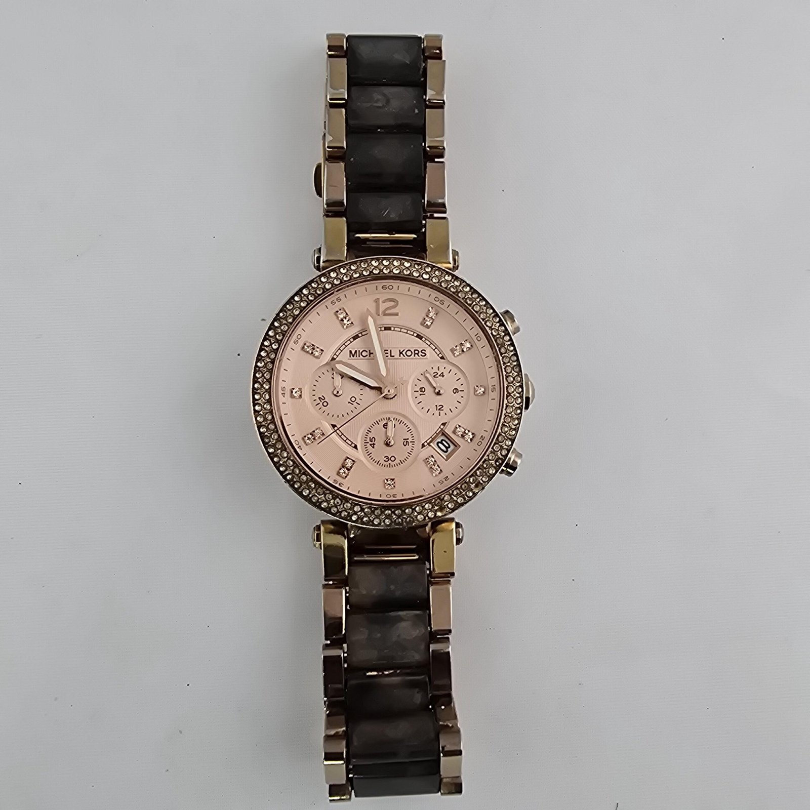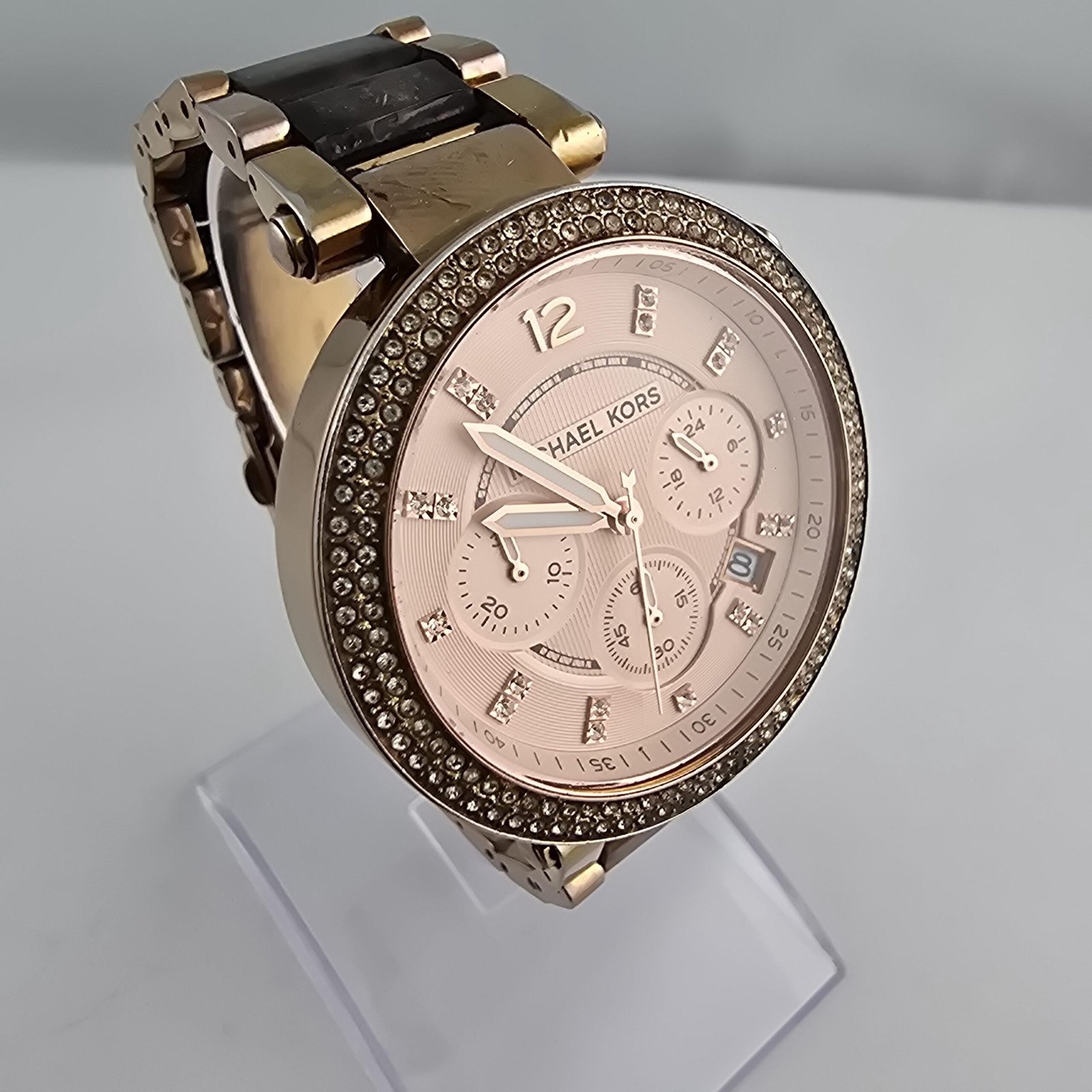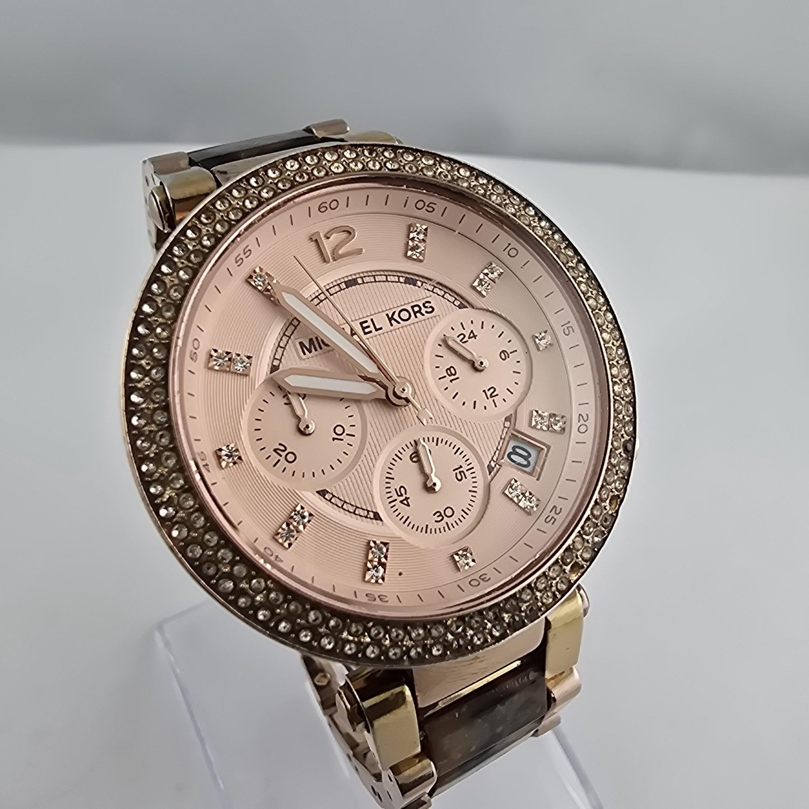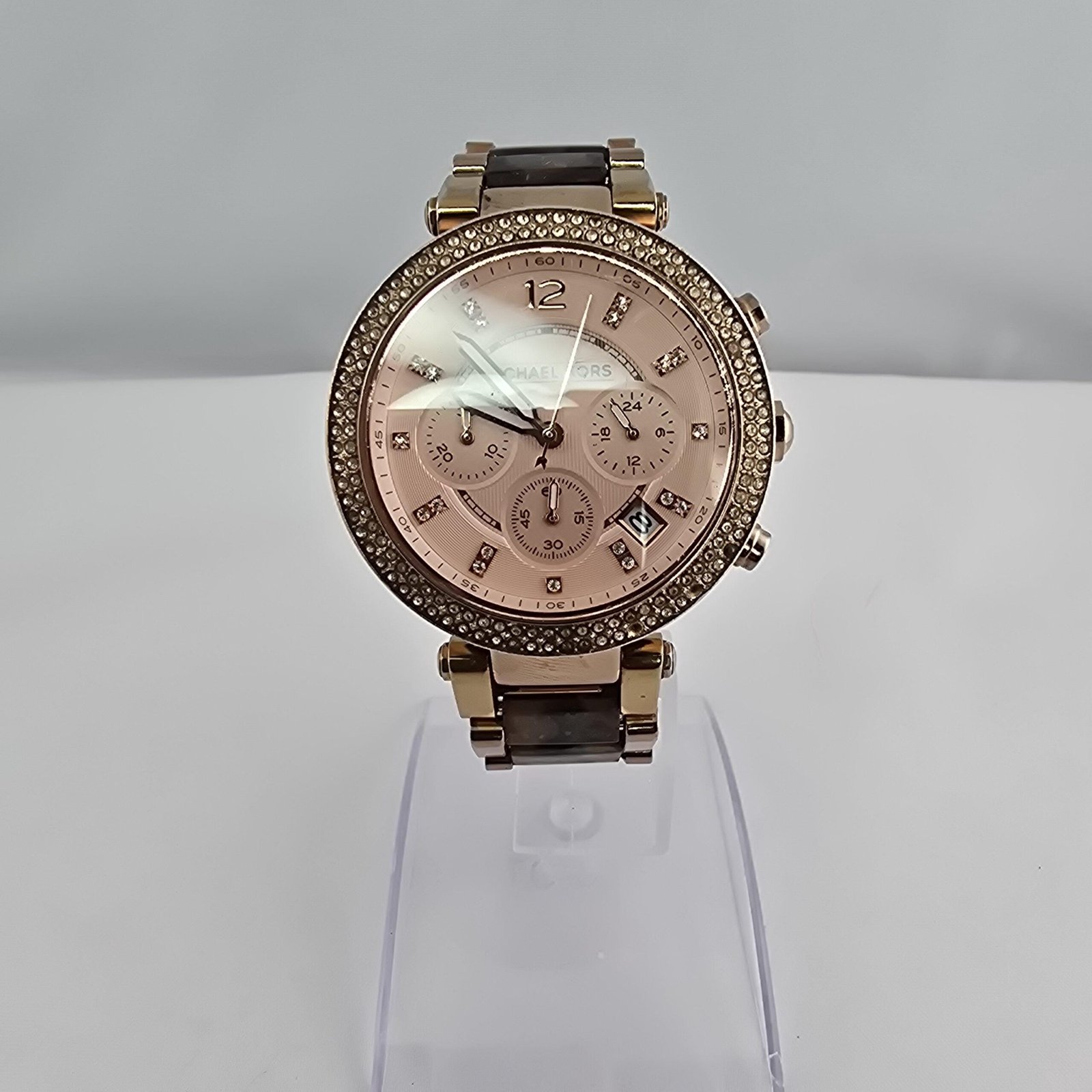Michael Kors Parker MK5538 Rose Gold Chronograph Watch Crystal Bezel 39mm