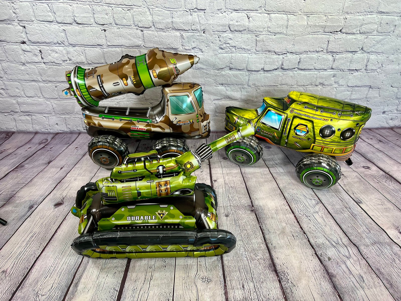Military Trucks Tanks and Missile Balloons 3 PC Set | Kids Birthday Patriotic Events Veterans Soldiers | Party Supplies and Decorations