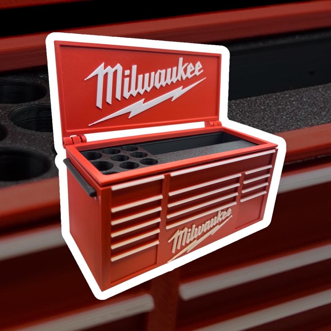 Milwaukee Toolbox Business Card and Pen Holder – Mini Tool Chest Desk Organizer – Perfect Gift for Contractors and Tradesmen