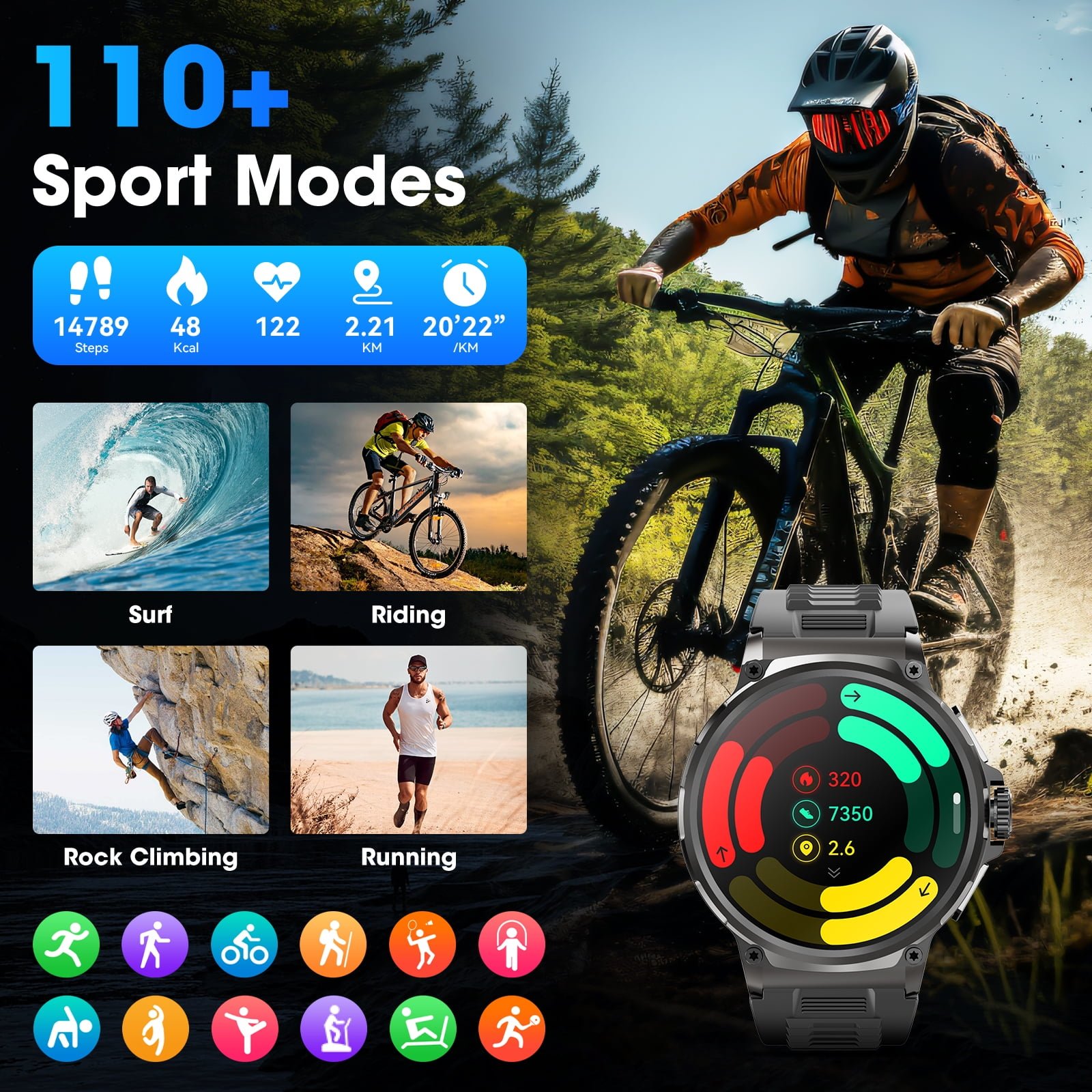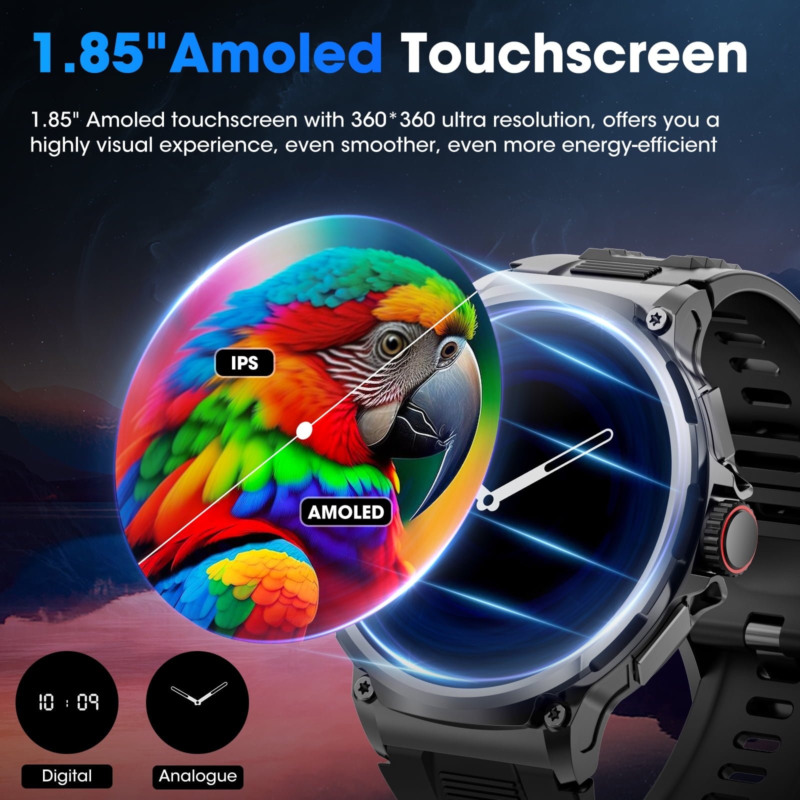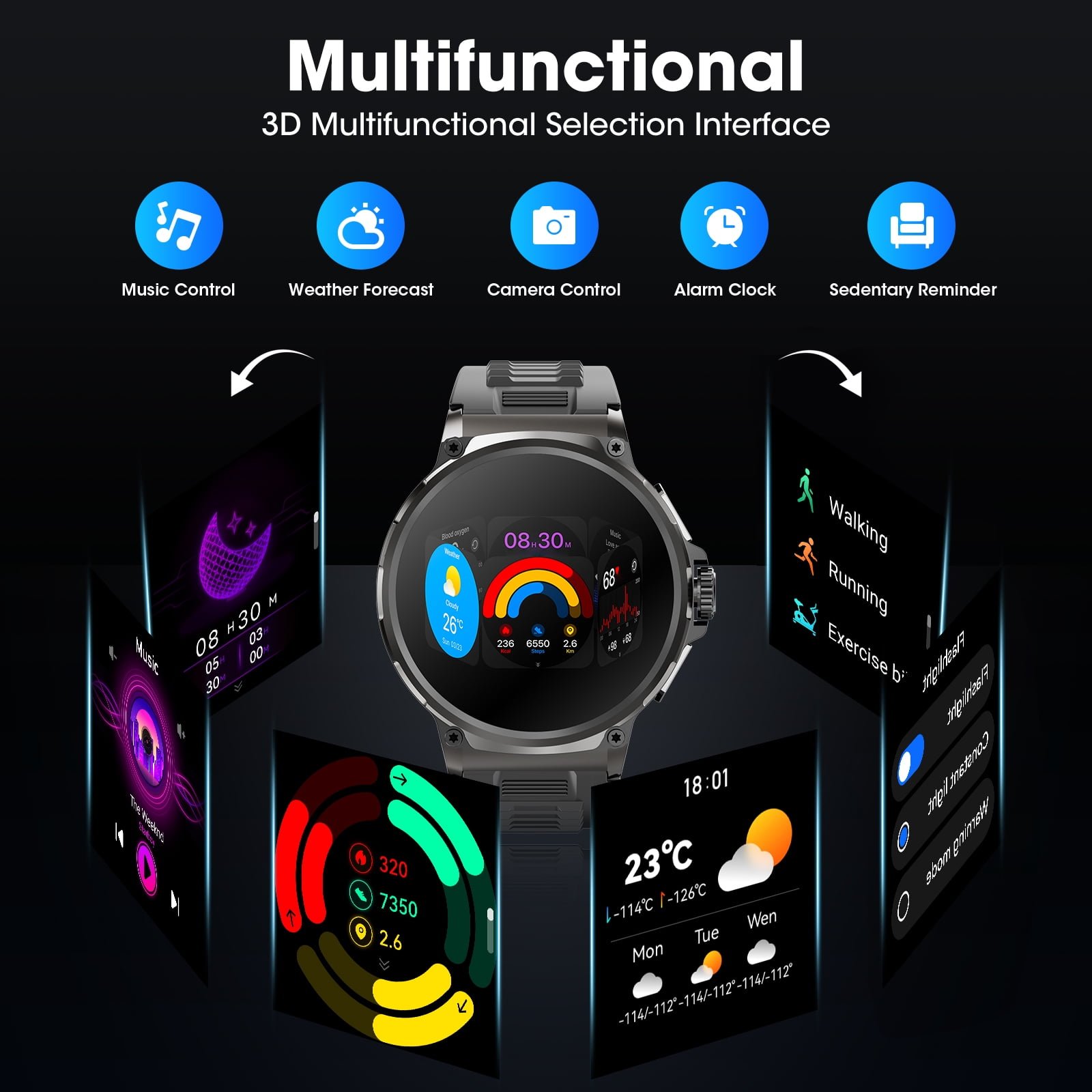 This smartwatch is designed specifically for men, with an extra-large 55mm dial and a 1.85-inch high-definition display for a wide field of view and clear details. The all-metal body is sturdy, durable, and has a unique texture. With over 100 watch face wallpapers and personalized customization features, you will enjoy a fresh look every time you wear it.