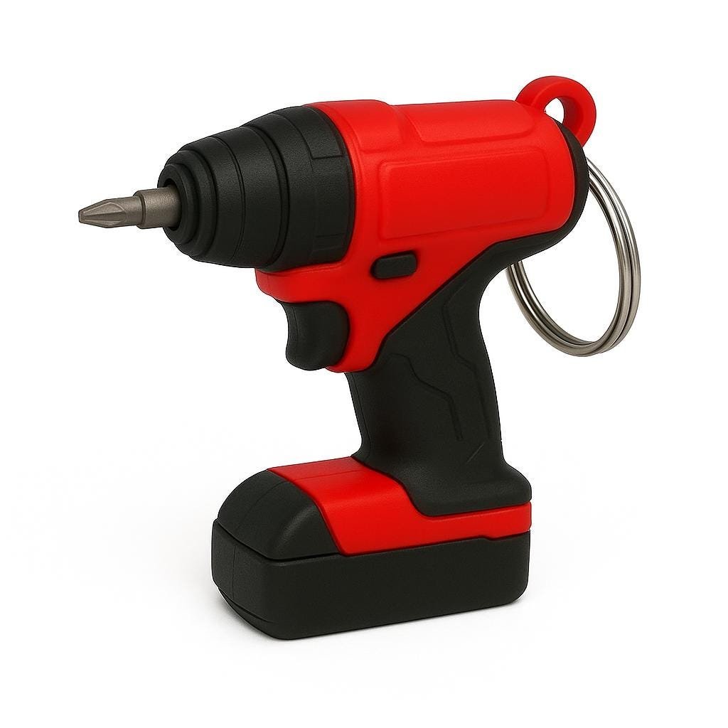 Mini Drill Keychain – Red & Black 3D Printed Tool Gift – Fits 14” Hex Bits – Perect Gift Mechanics Contractor for Him Garage Shop Keychain
