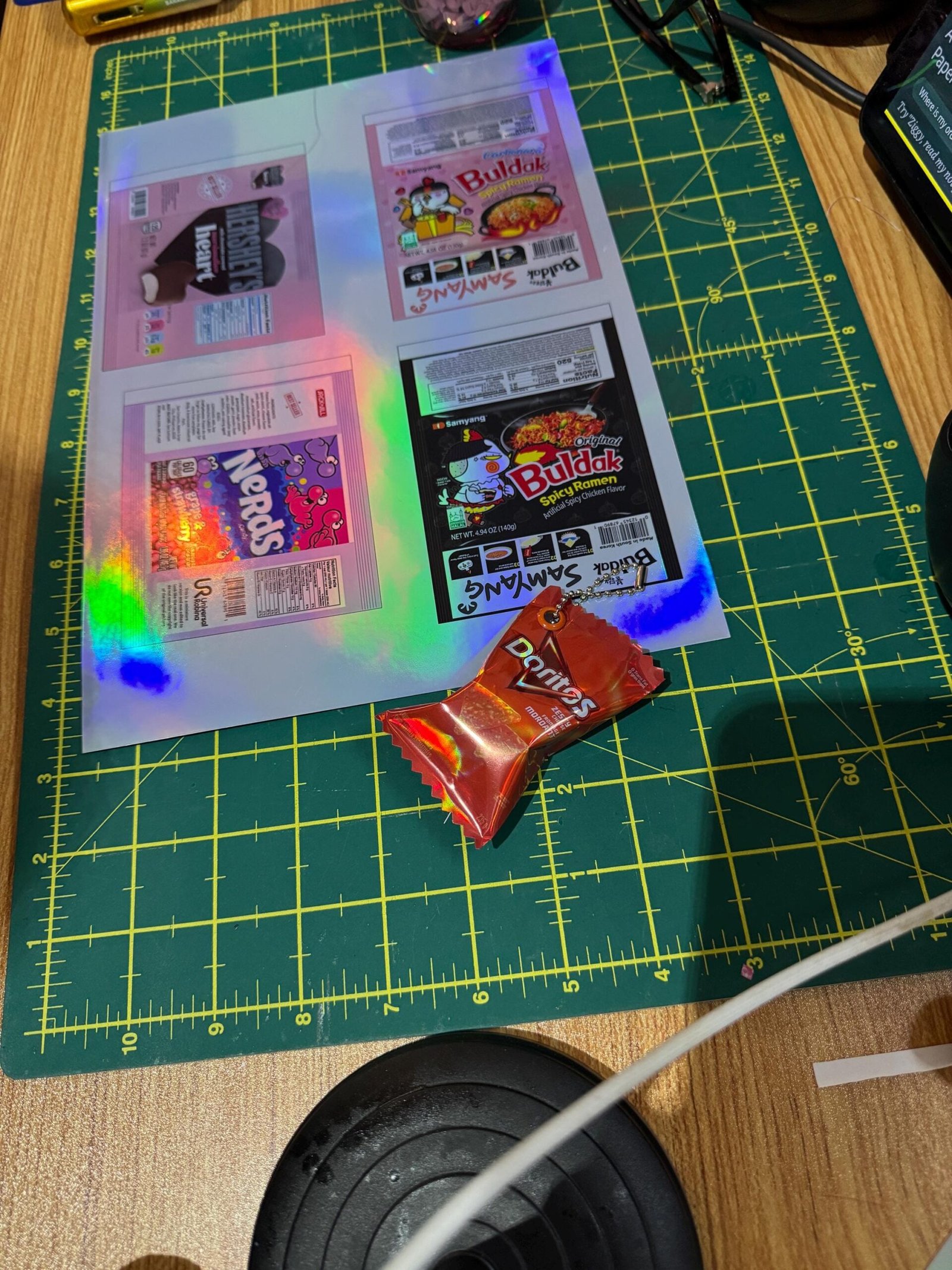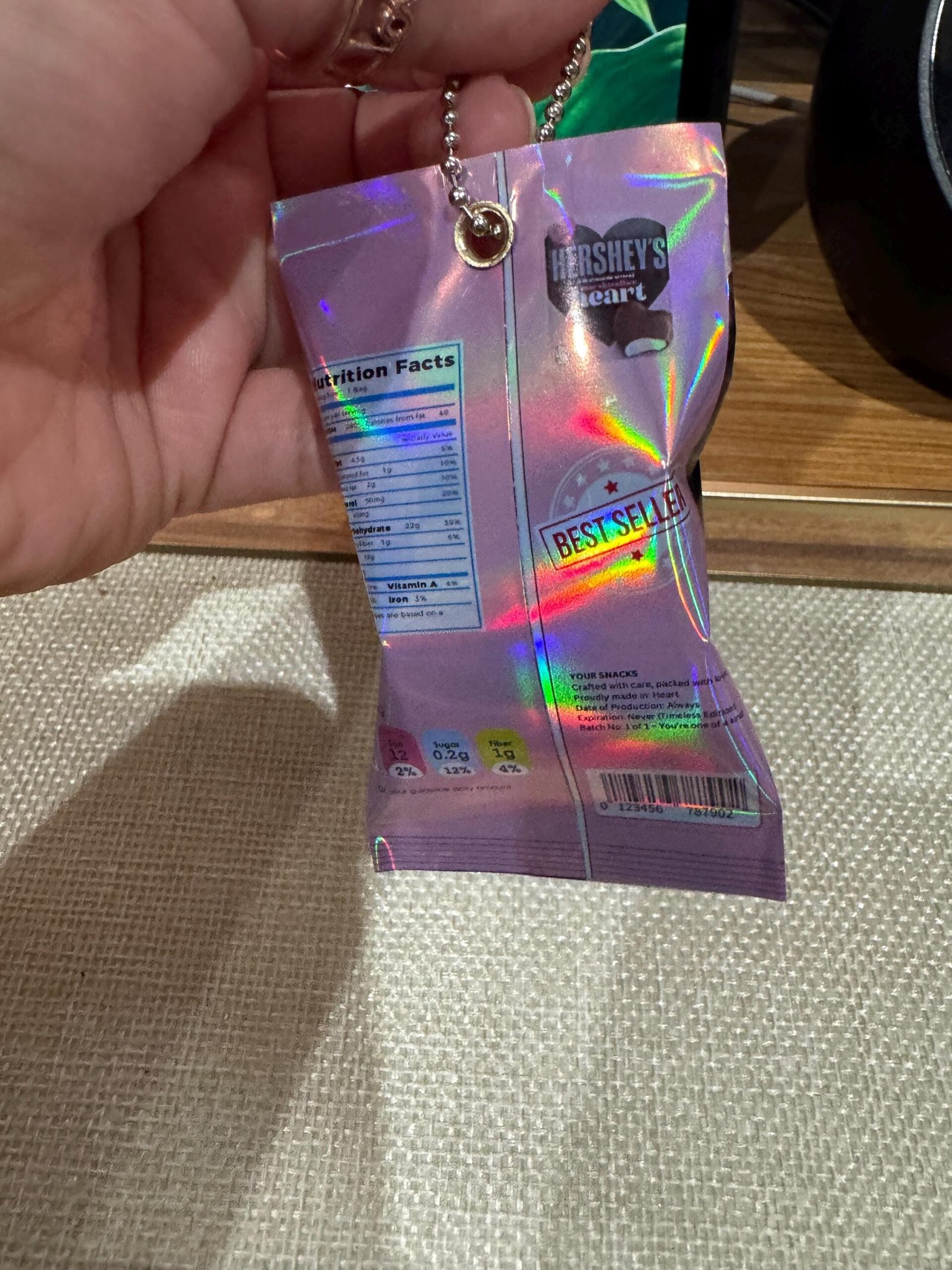 Add a little sparkle and snack love! to your everyday carry with this Mini Snack Packet Keychain. Made from durable, waterproof holographic vinyl, this cute trinket key ring shimmers beautifully in the light, showing off its playful design from every angle.
