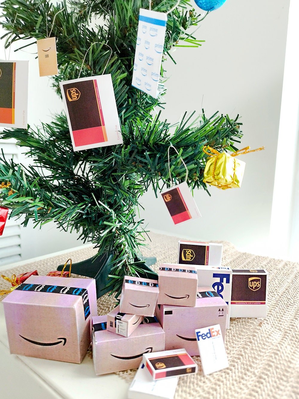 Miniature Delivery Box & Envelope Set — Amazon, UPS, FedEx Packages for Dollhouse 1:6 and 12 Scale, Gift or Ornament