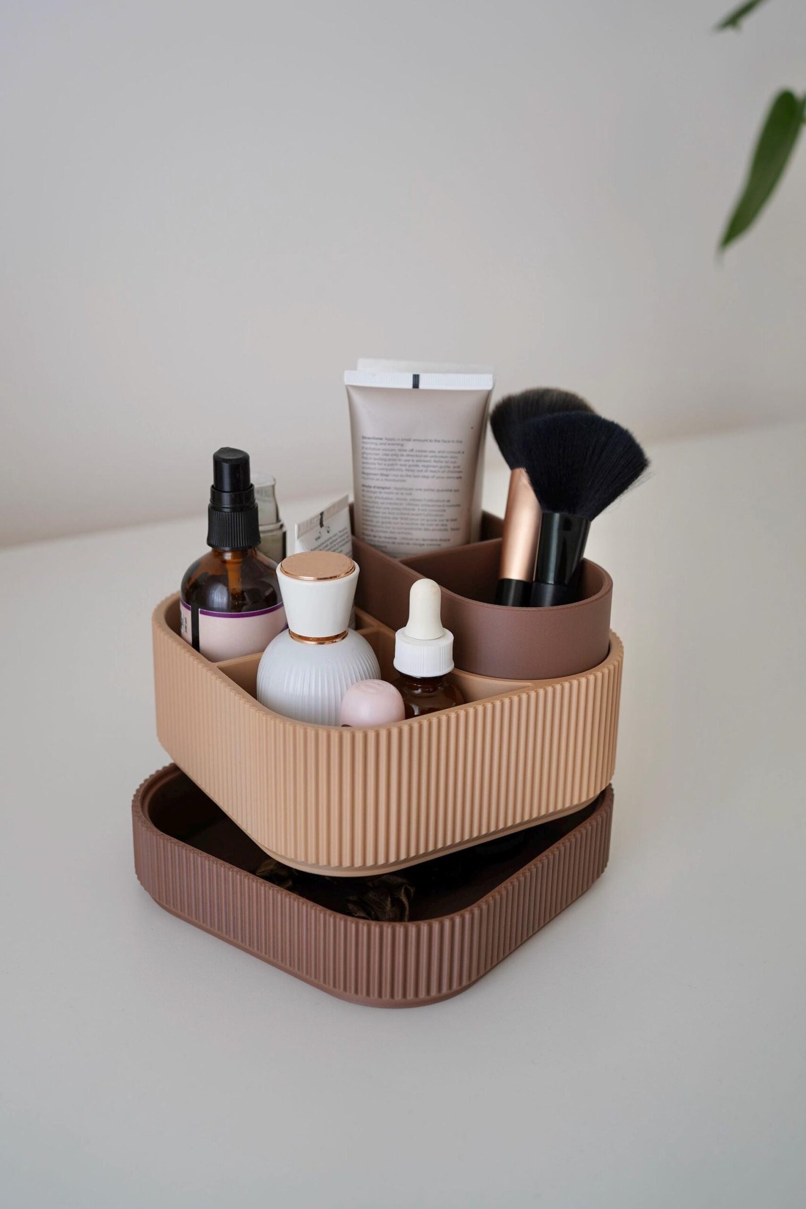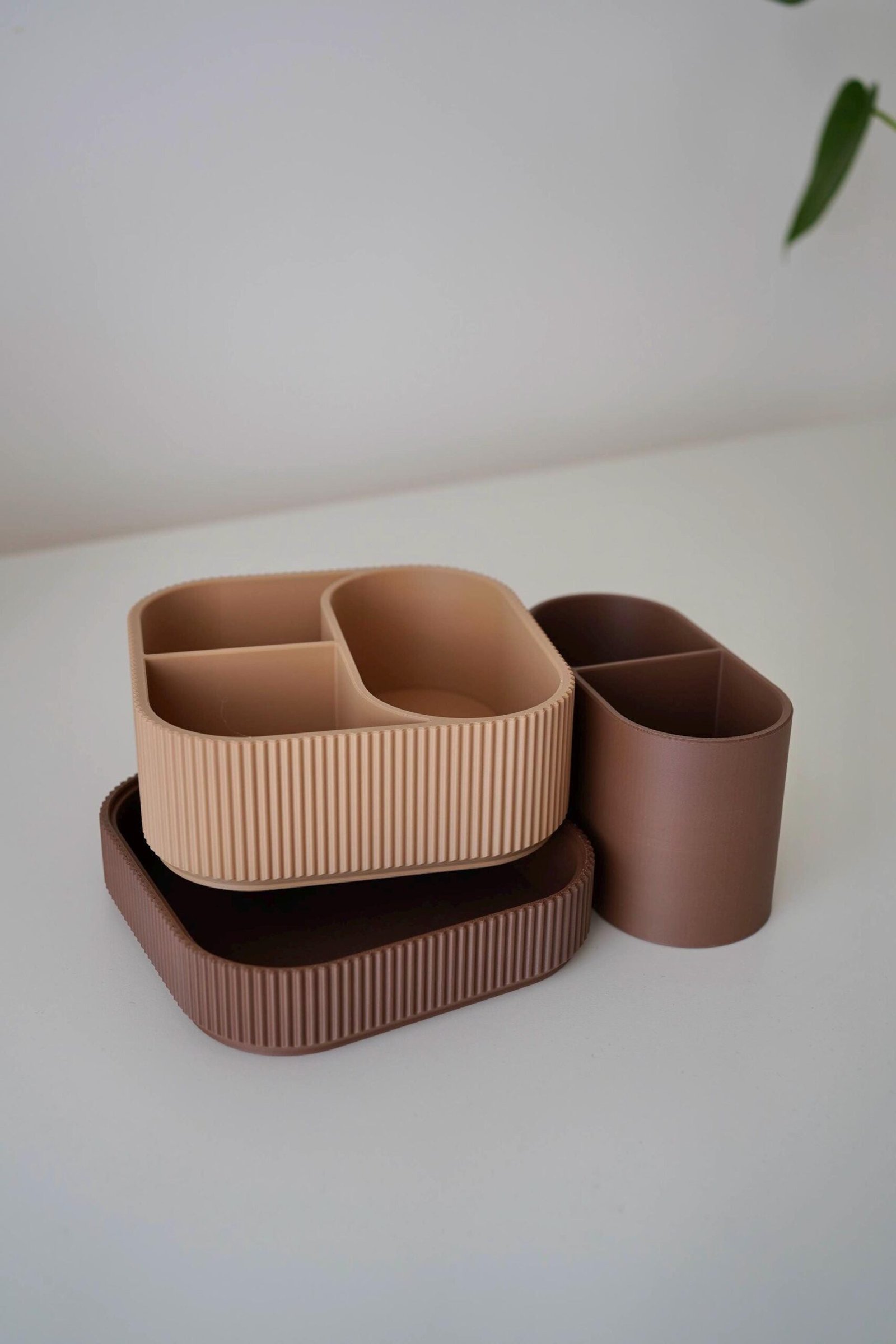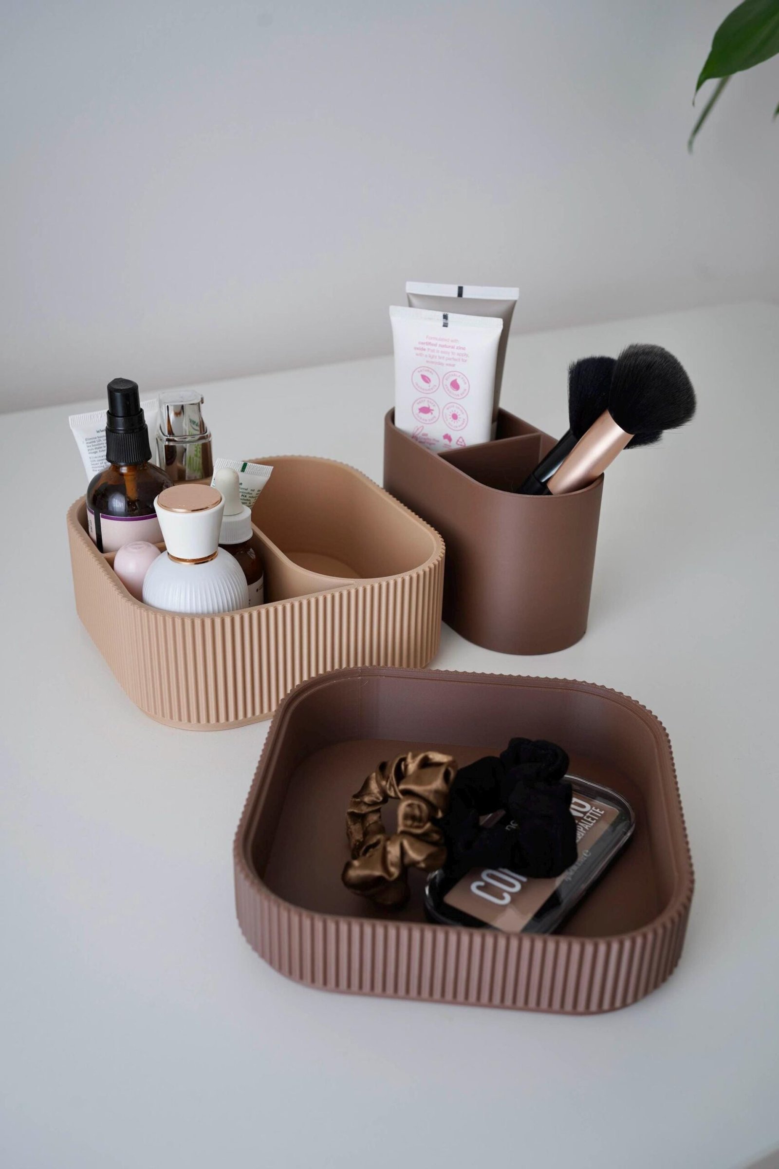 Minimalist 3D Printed Stackable Makeup Organizer – Modular Cube Tray with Ribbed Texture