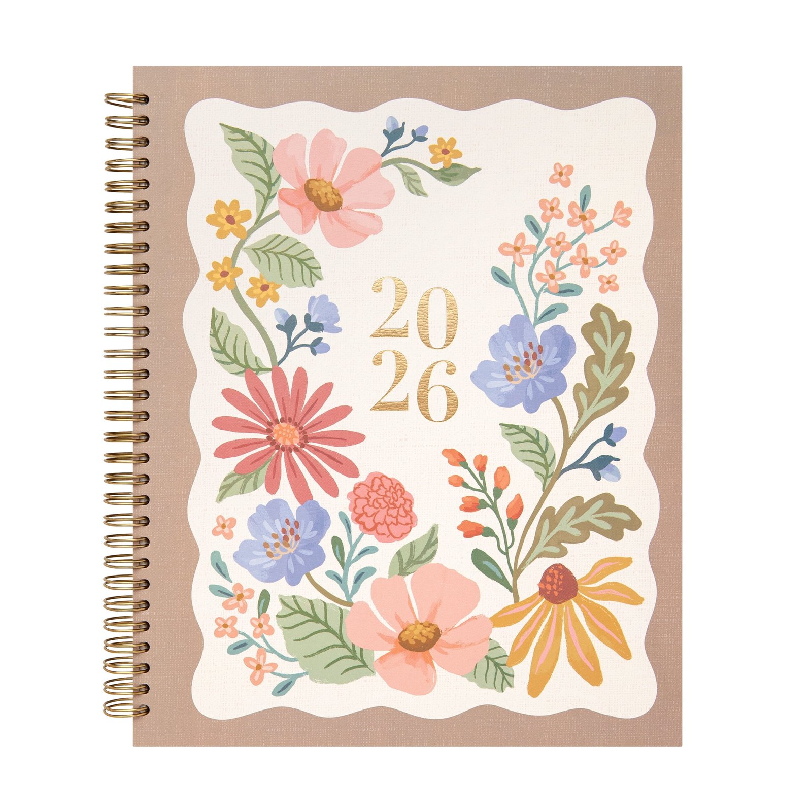 Mintgreen Monthly/Weekly Planner, 9"e;x 10.75"e;, Wildflower Mocha and Cream, 15 Months