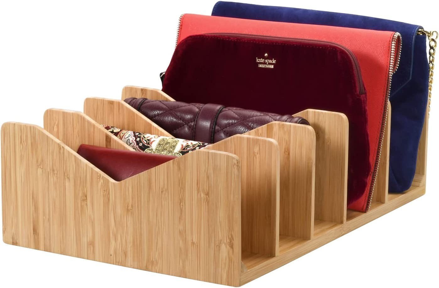 MobileVision Bamboo Purse and Wallet Organizer, Shelf Dividers for Closet or Dresser Organization and Storage, 5 dividers