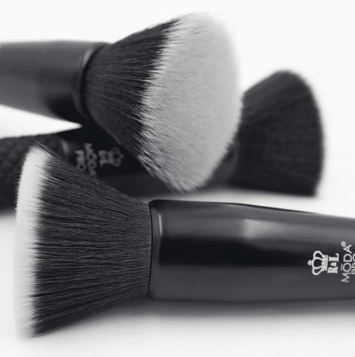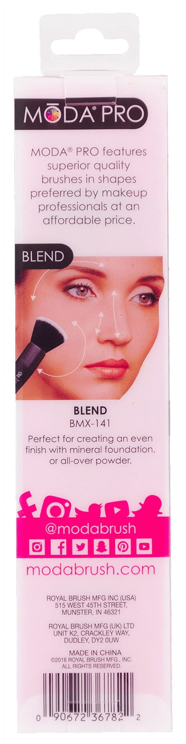 Achieve complexion perfection with this kabuki-style Moda Brush Pro Blending Makeup Brush, designed to buff foundation seamlessly into the skin. Its dense, soft bristles provide smooth, even coverage for a flawless finish. Ideal for liquid, cream, or powder foundations, this brush helps blur imperfections and create a natural, airbrushed look with minimal effort. A must-have tool for your makeup routine!