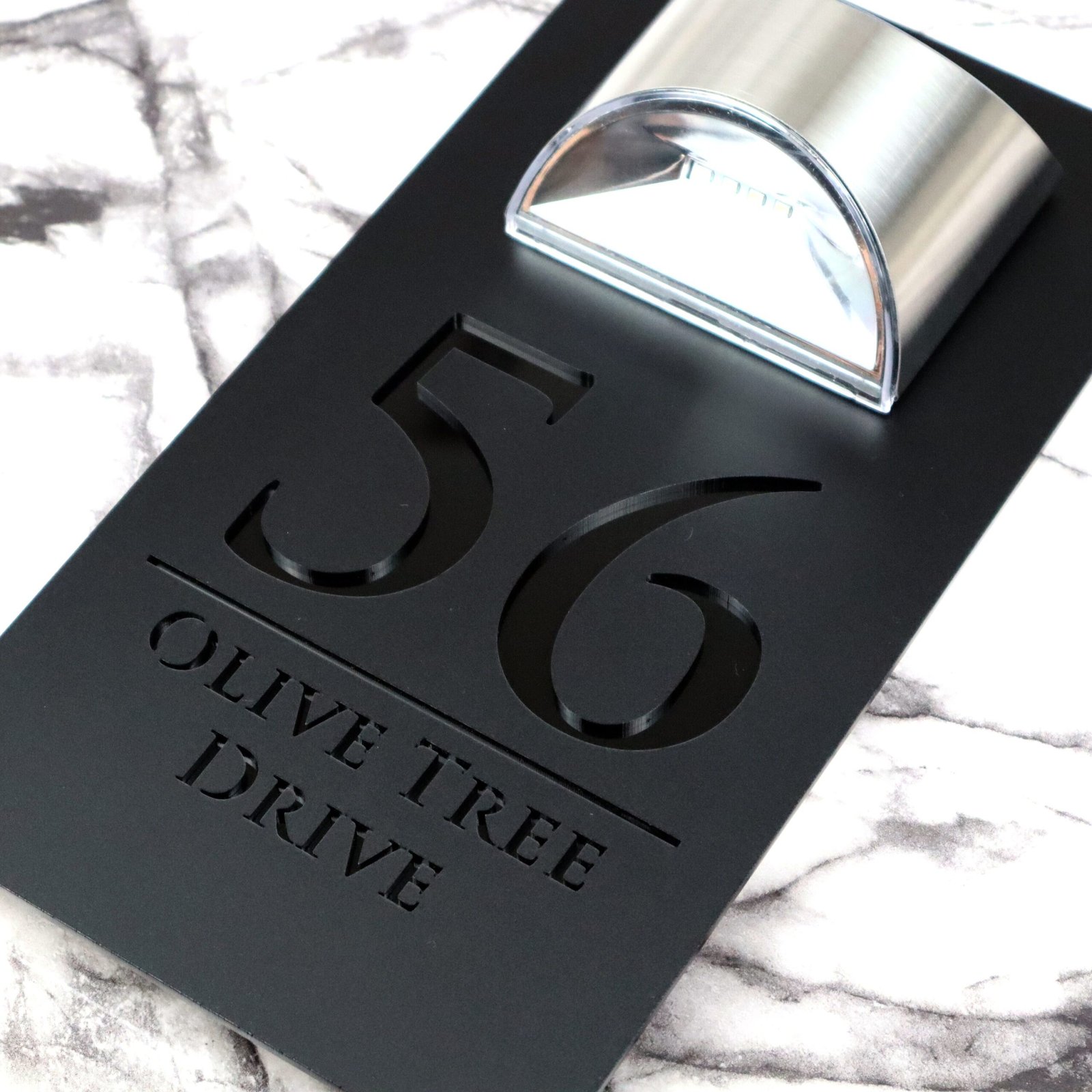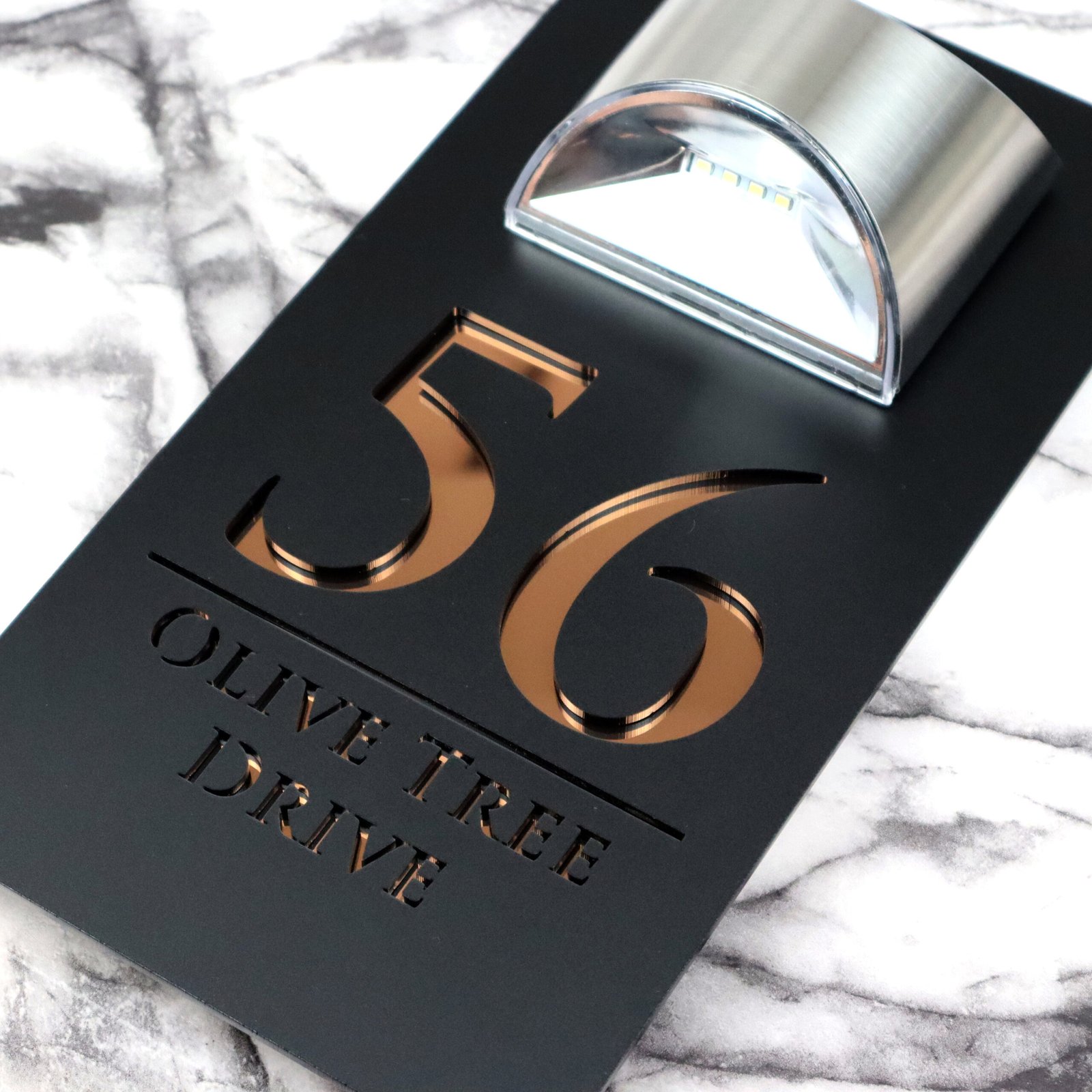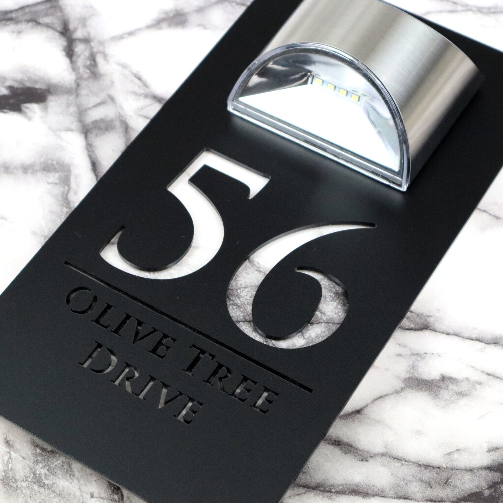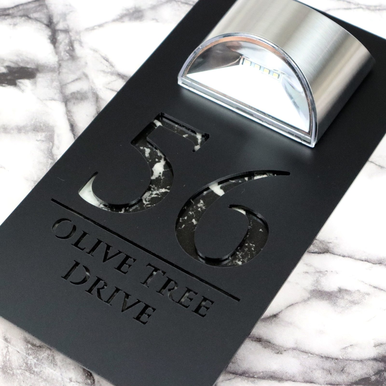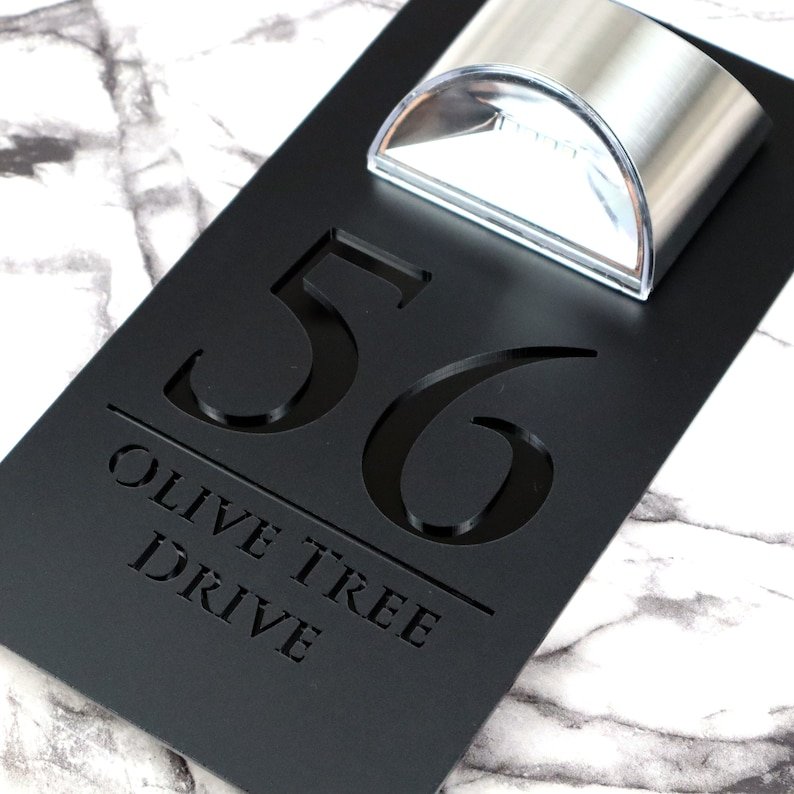 Modern Black Mirror house sign with light Contemporary Mirror Marble Property Number Door Sign Plaque Solar LED Lit Numbers Bellissima F32
