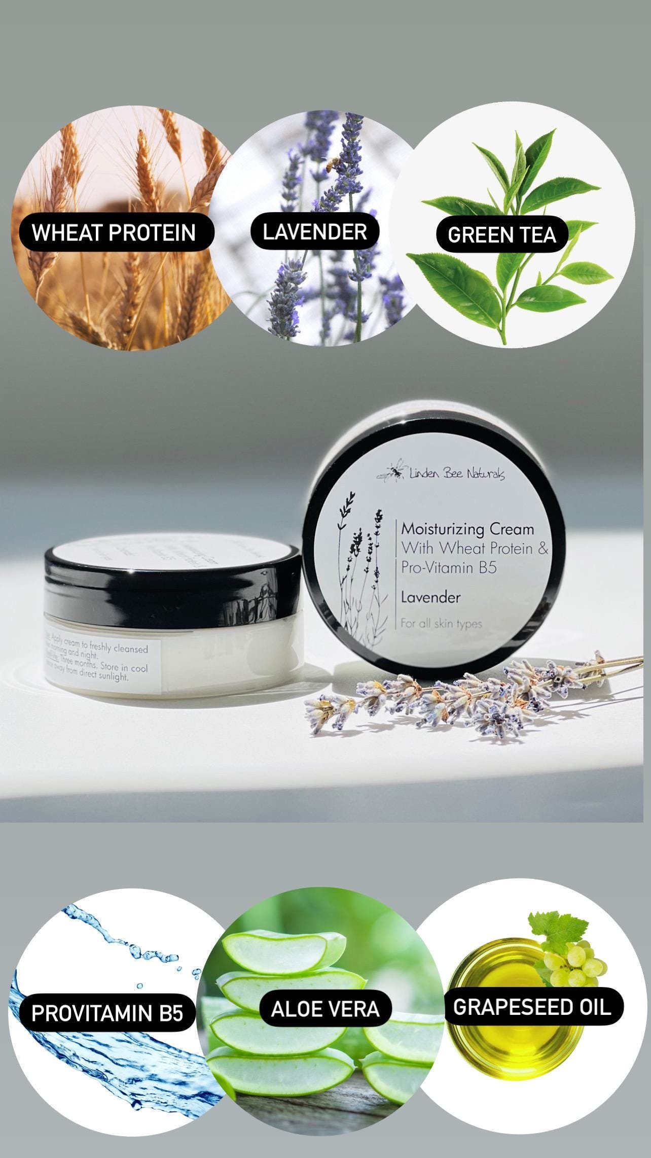 Face Cream with Wheat Protein, Provitamin B5 and Lavender is a powerful moisturizer for instantly hydrated, visibly plumped skin that glows. Calming, hydrating, moisturizing, leaves your skin feeling silky and smooth. Suitable for all skin types.