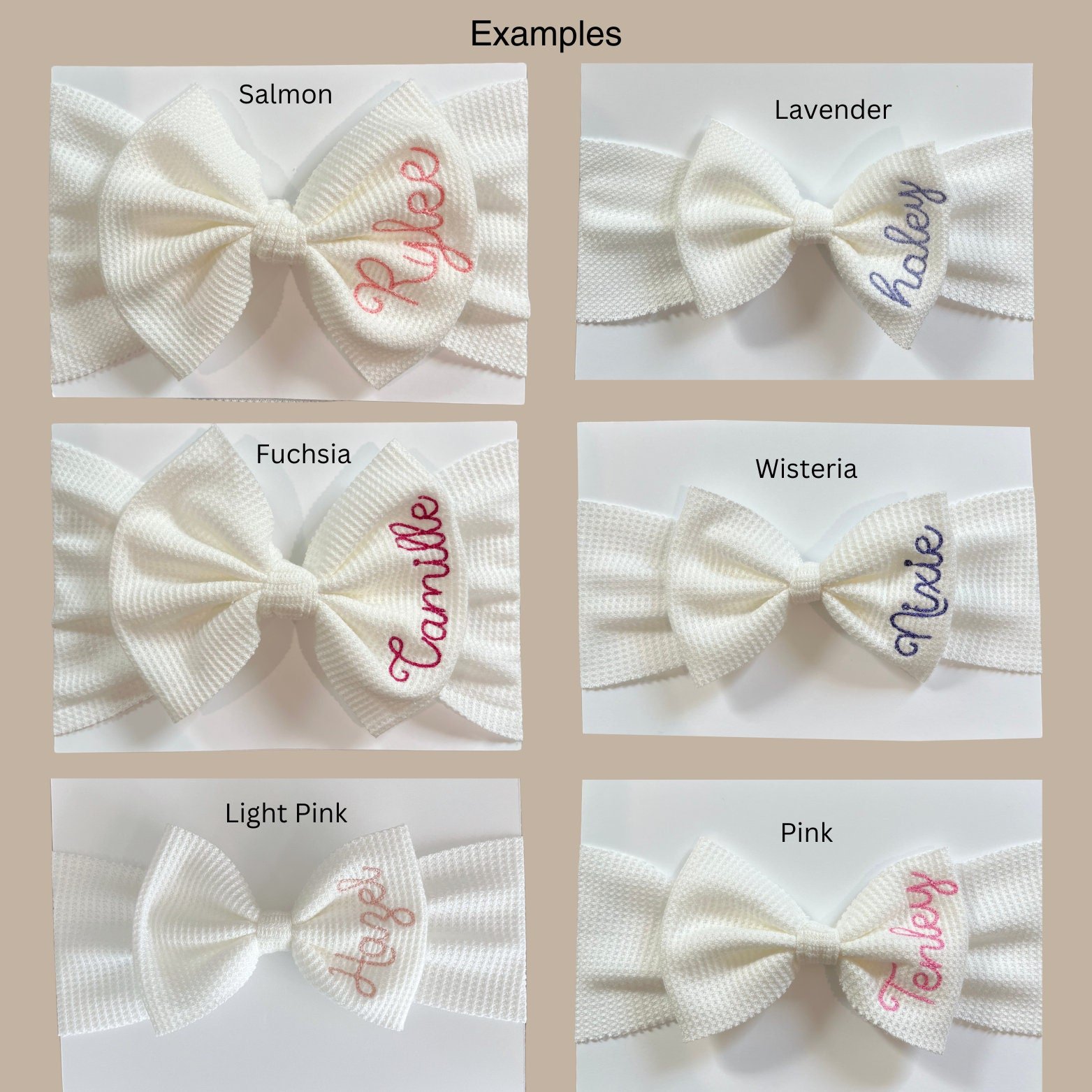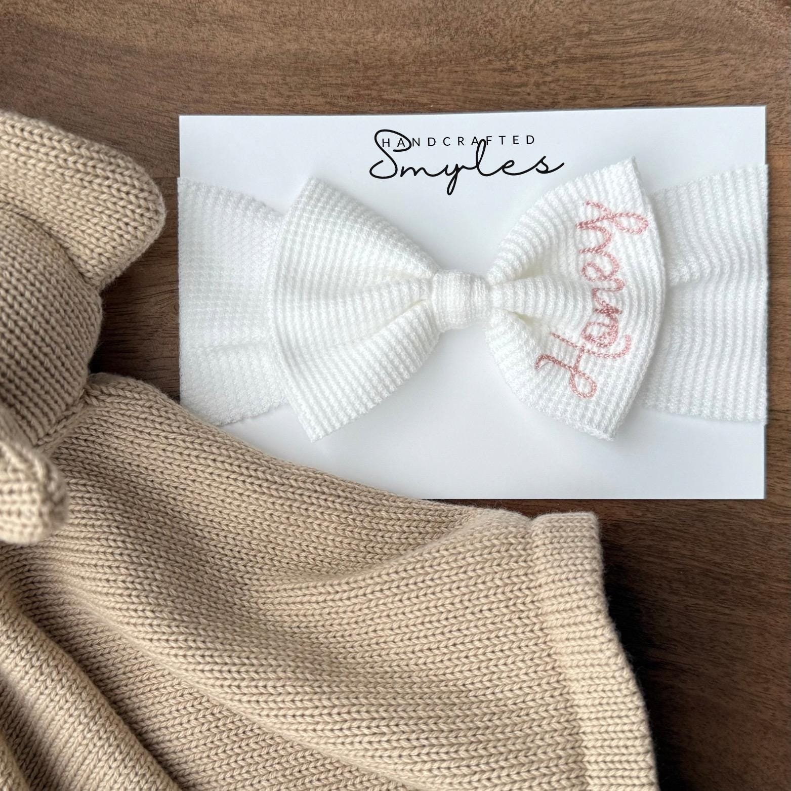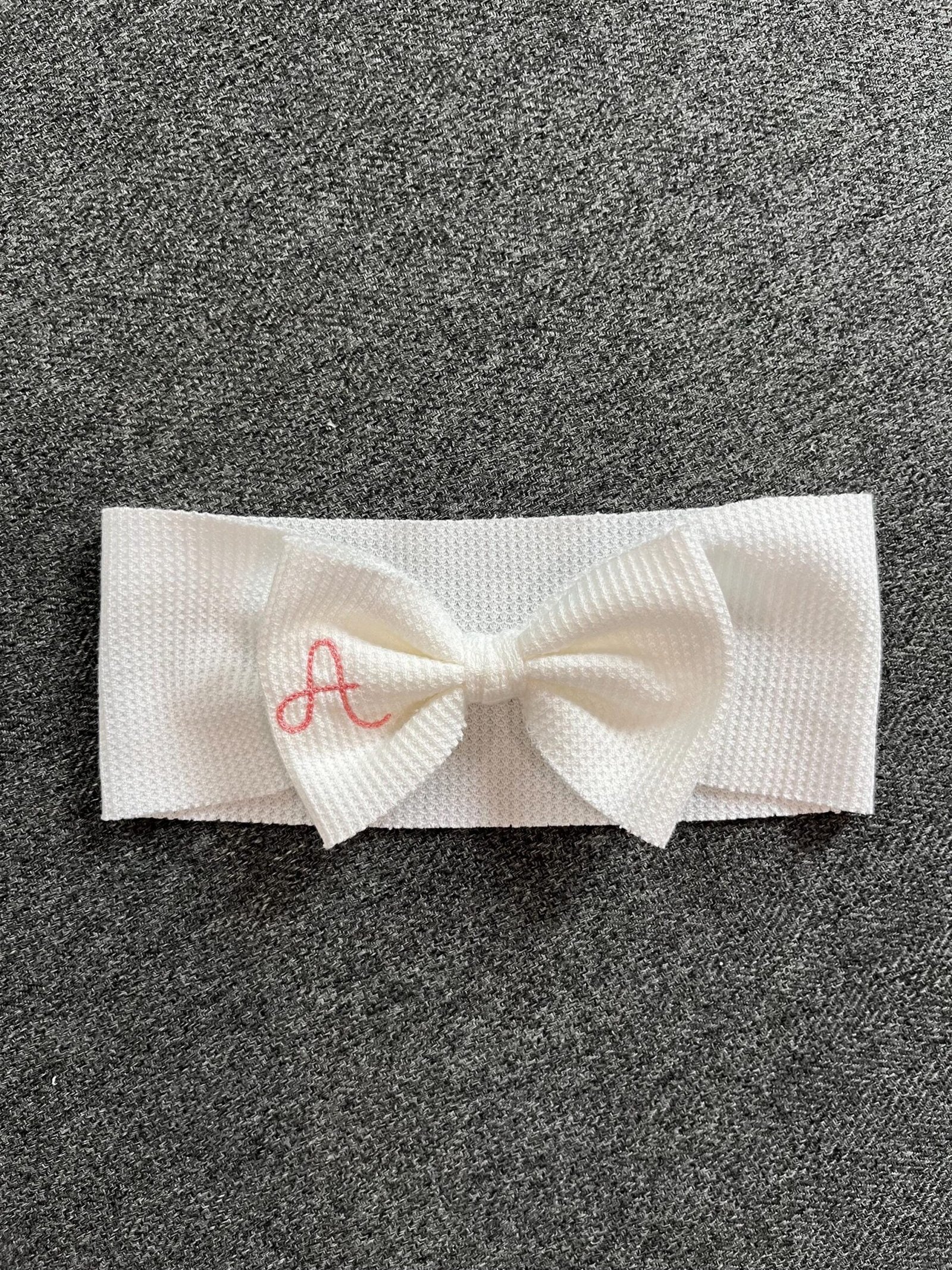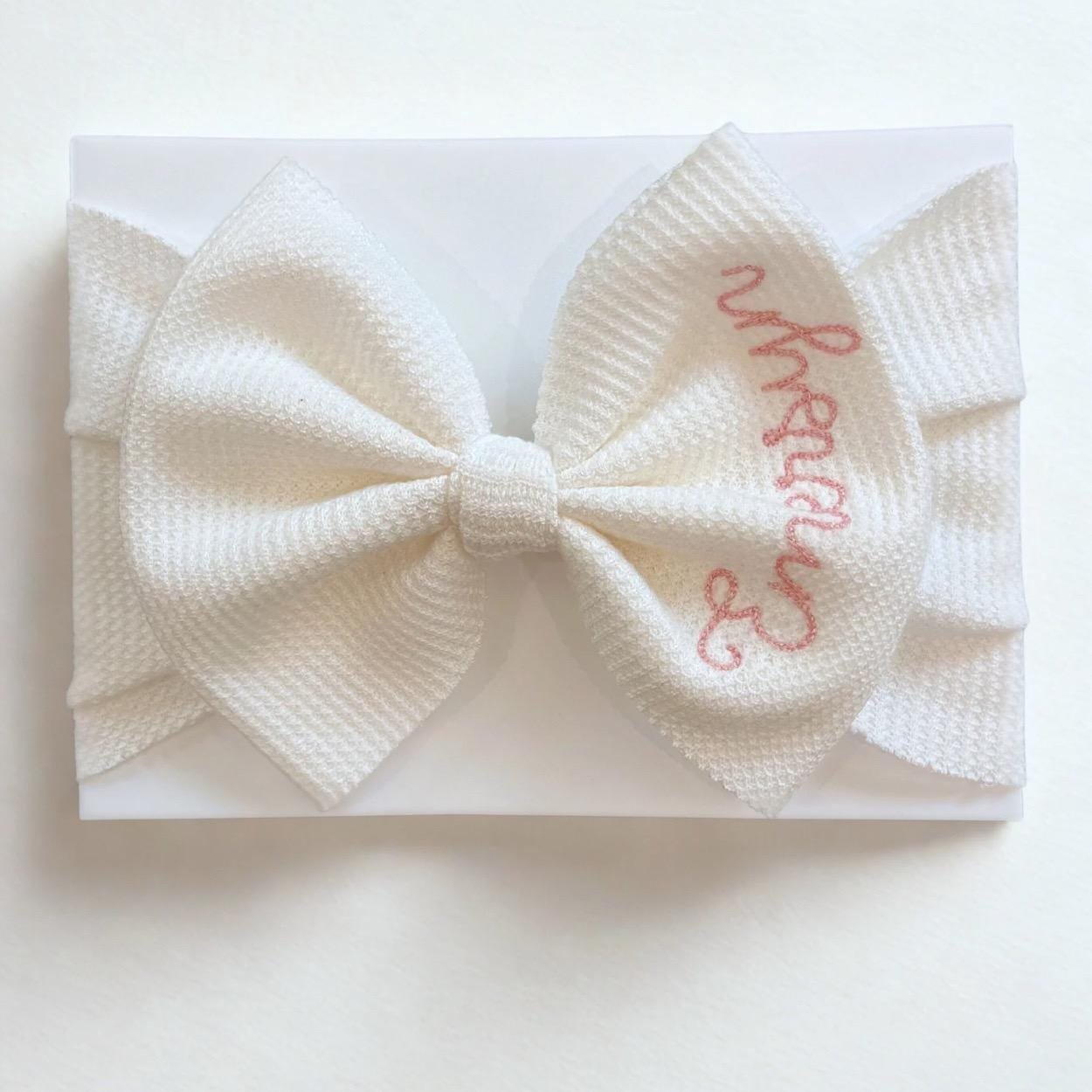 Monogram Baby Bow Headband: Embroidered Name, Soft Waffle Knit