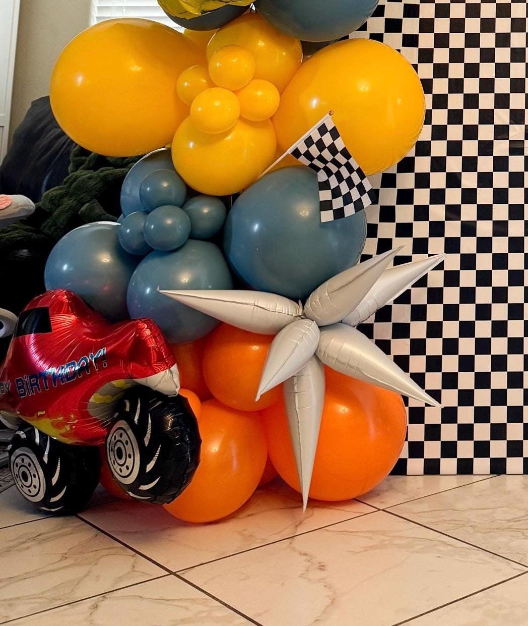 Monster Truck DIY balloon garland, Dinosaur balloons, monster truck birthday, dinosaur birthday, monster truck party, monster truck party