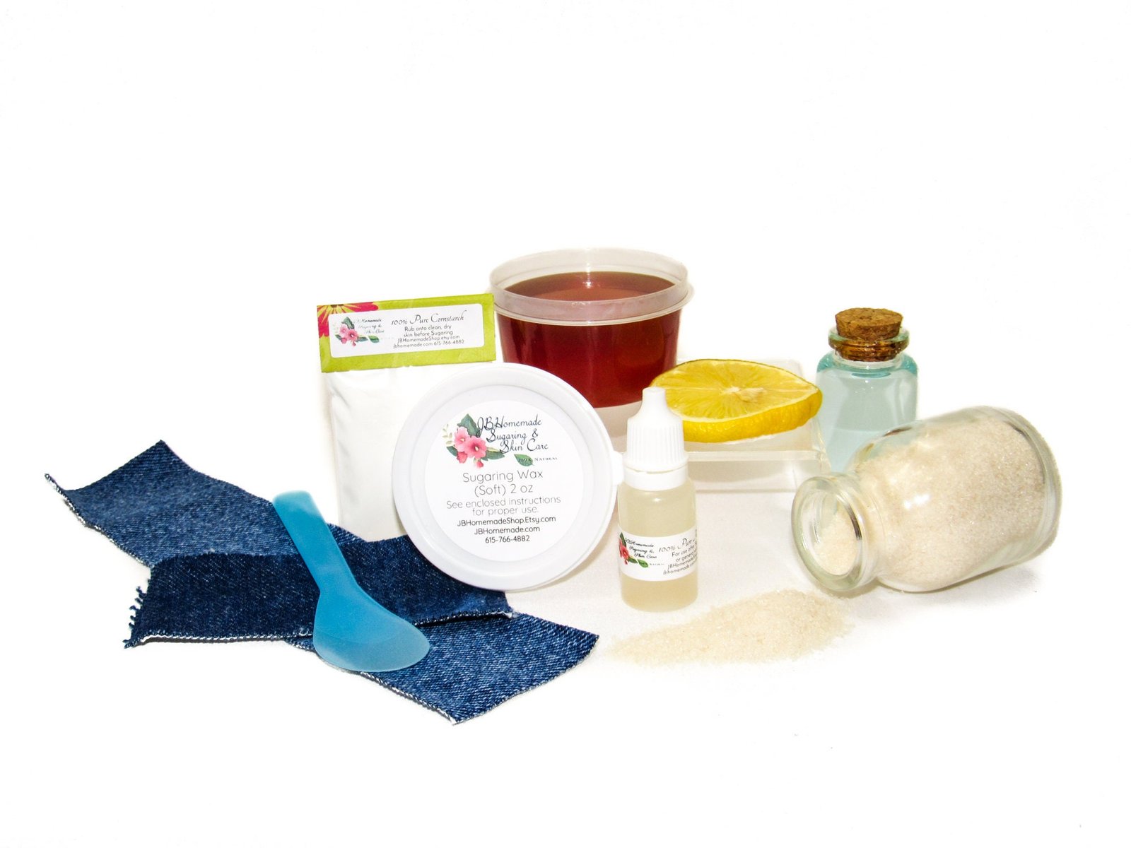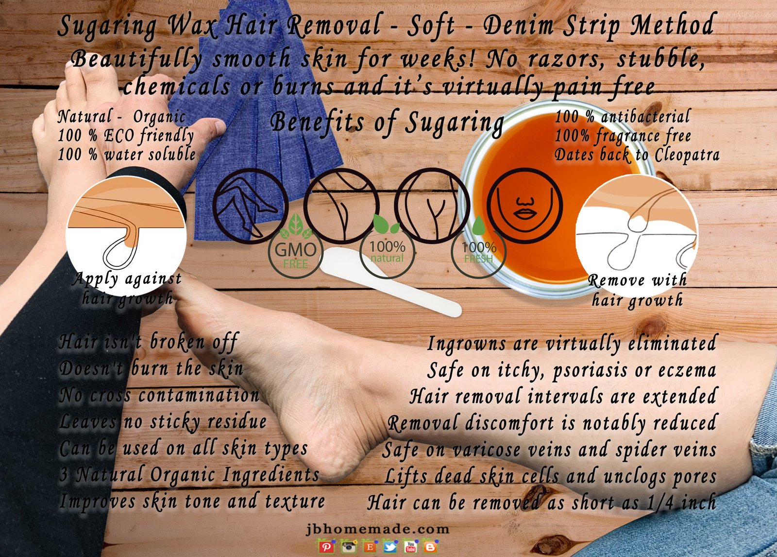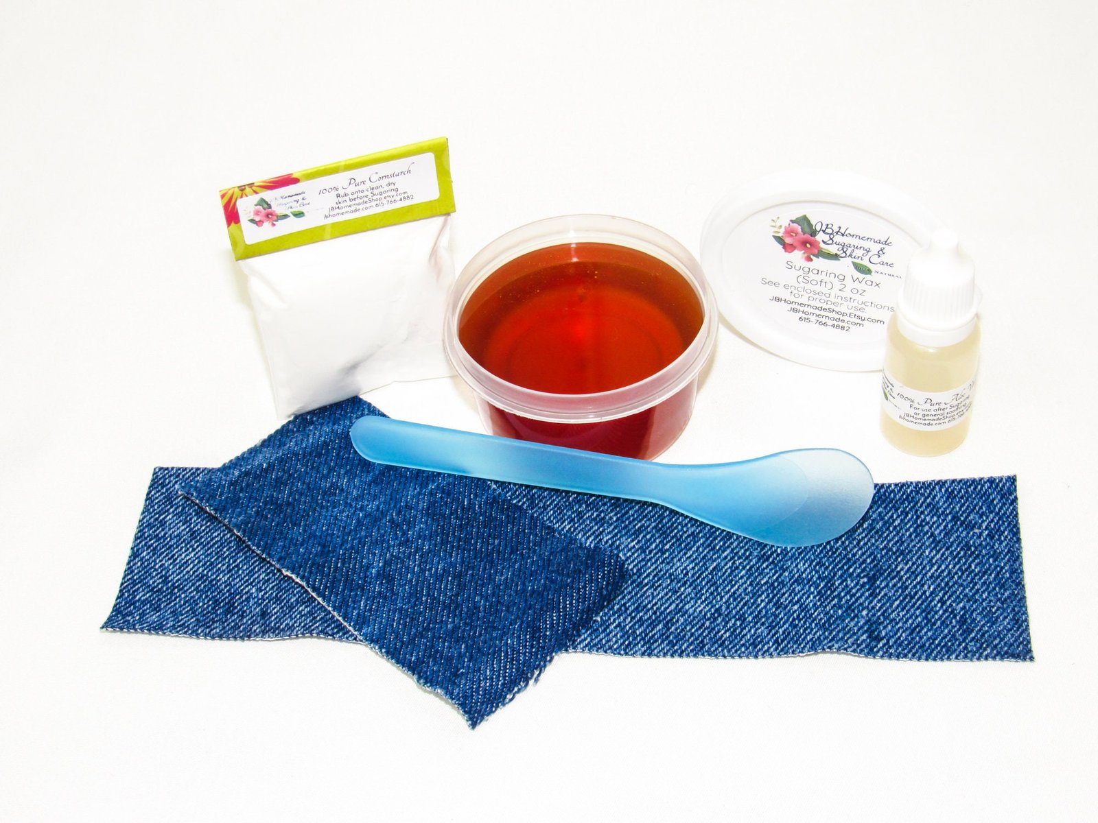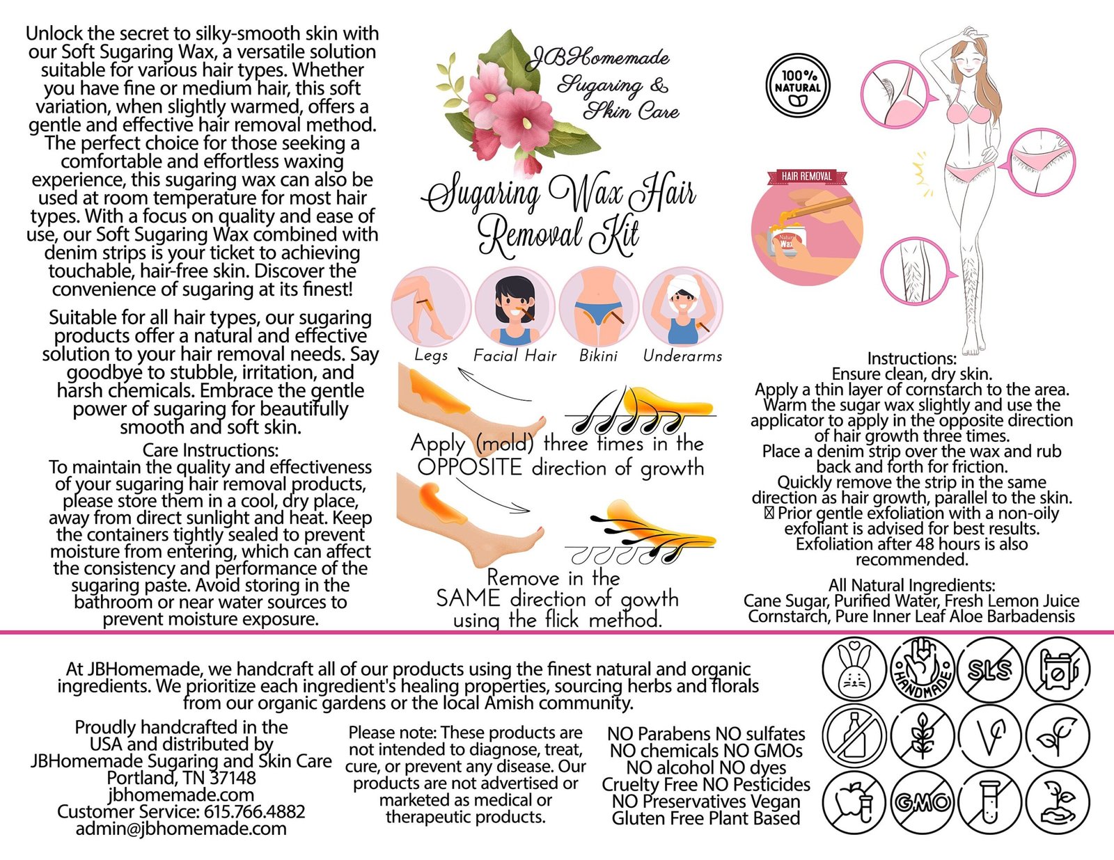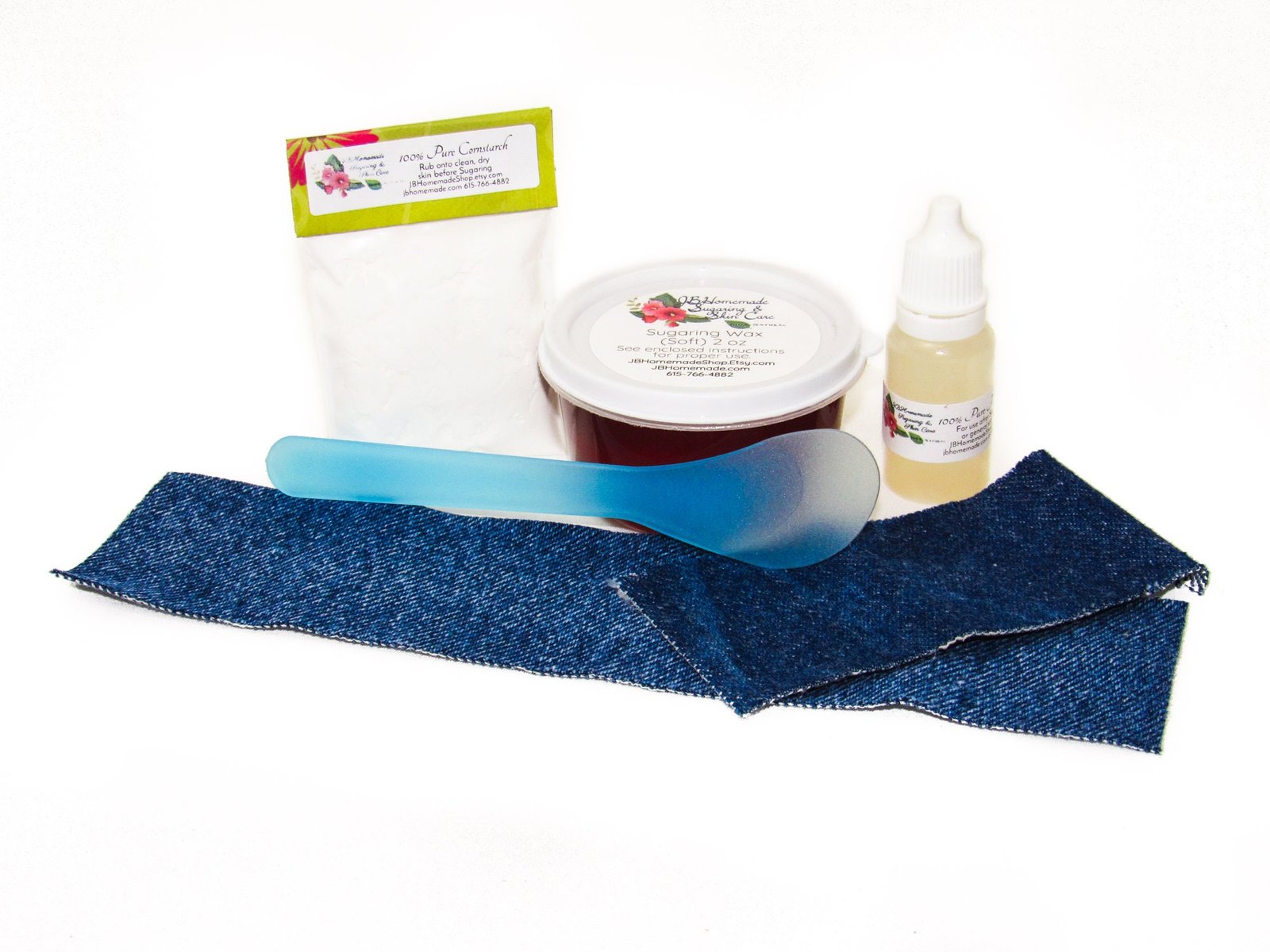 Natural Sugaring Wax Hair Removal Kit: Soft Formula, Denim Strips 2 oz