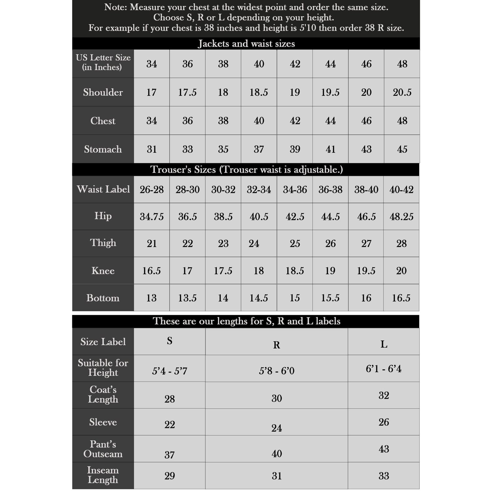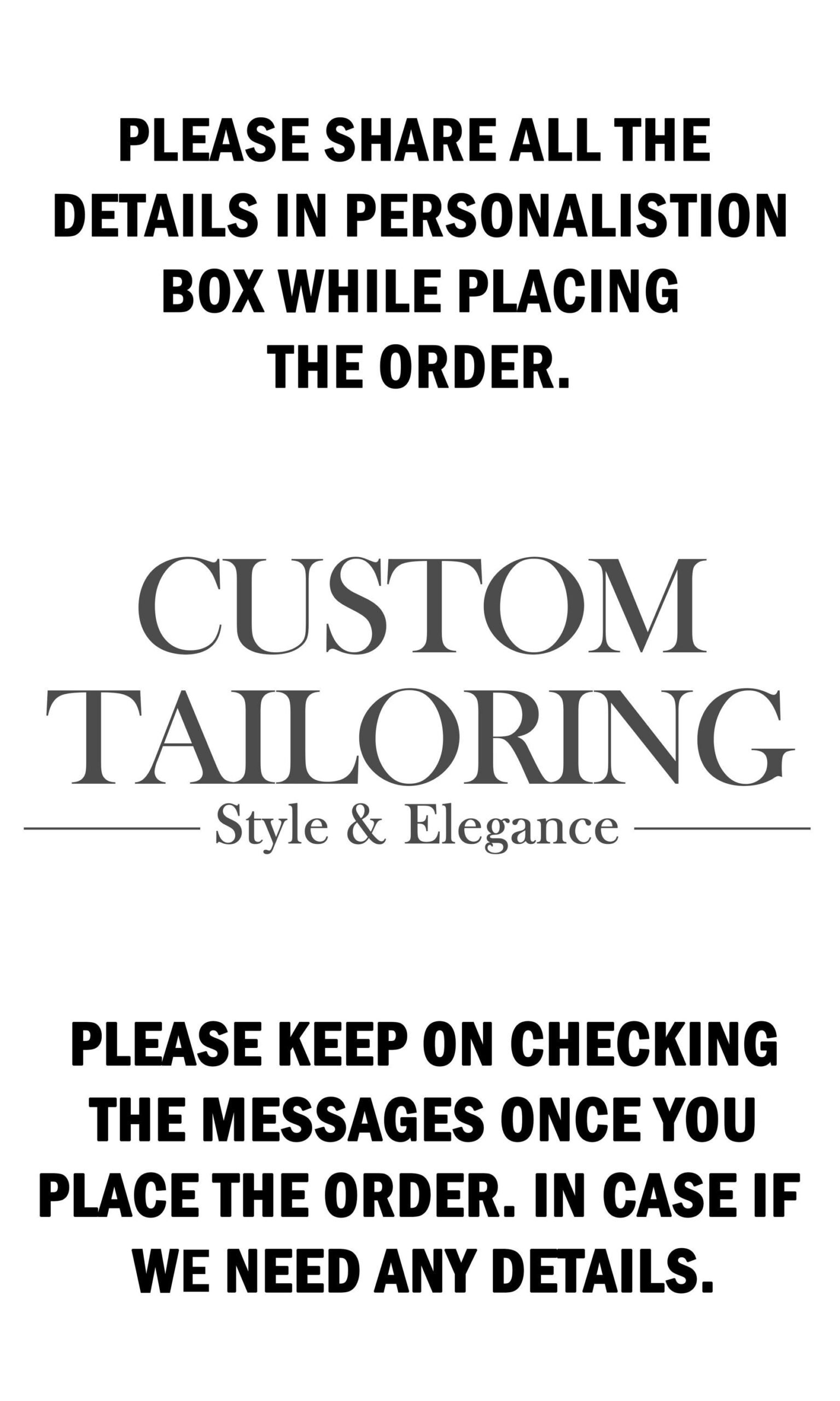 Customization available—just send us your measurements in inches: Chest, Stomach, Waist, Hip, Shoulder, Height, Trouser Length, and Vest Length after ordering.