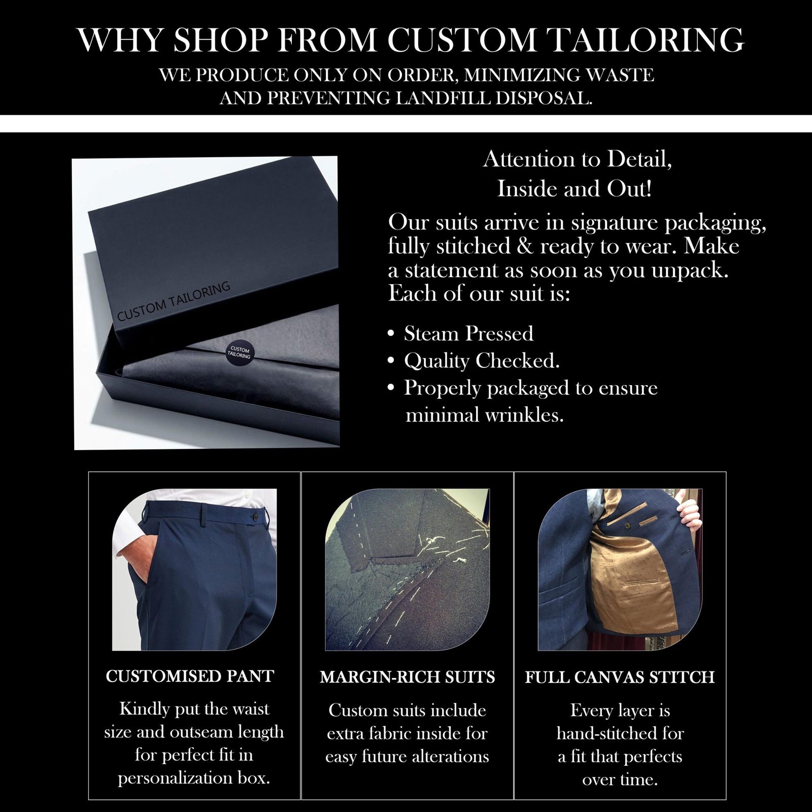 Your Suit comes fully stitched, ready to wear and well packed.
