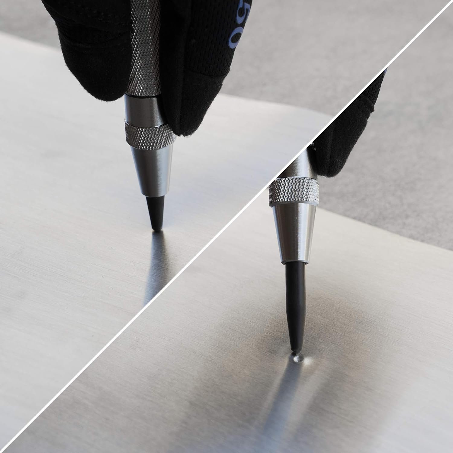 ADJUSTABLE HOLE-PUNCH TOOL: The spring-loaded center-punch design uses spring tension that can be modified and adjusted for light or heavy marking, punching, or staking. Change the strike force any time to match the surface you are working with.