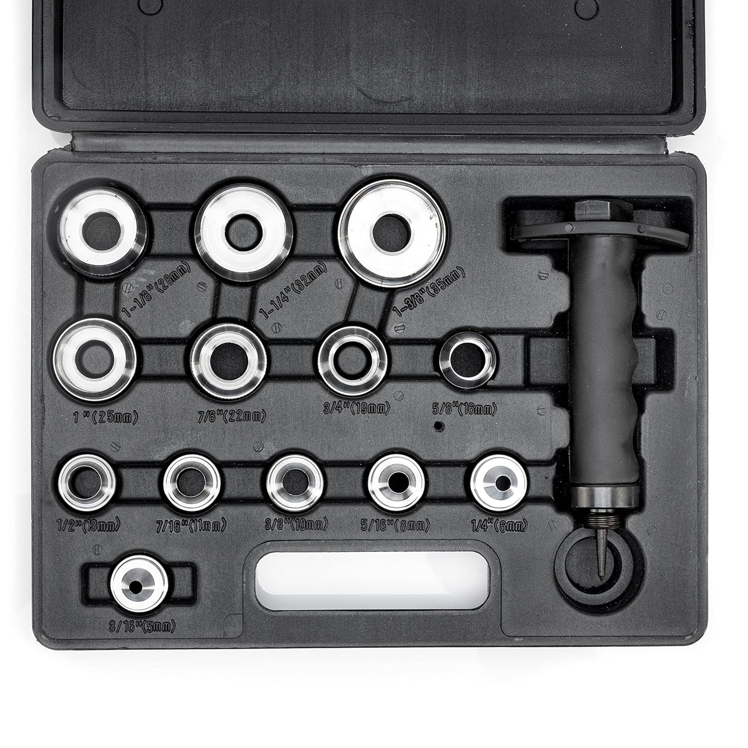 QUALITY MATERIALS: With a chrome-plated shank body and a hardened S2 steel tip, this corrosion-resistant wood-and-metal punch tool can withstand high-impact punches and force. The knurled, nonslip cap gives you a firm one-handed grip on the tool.