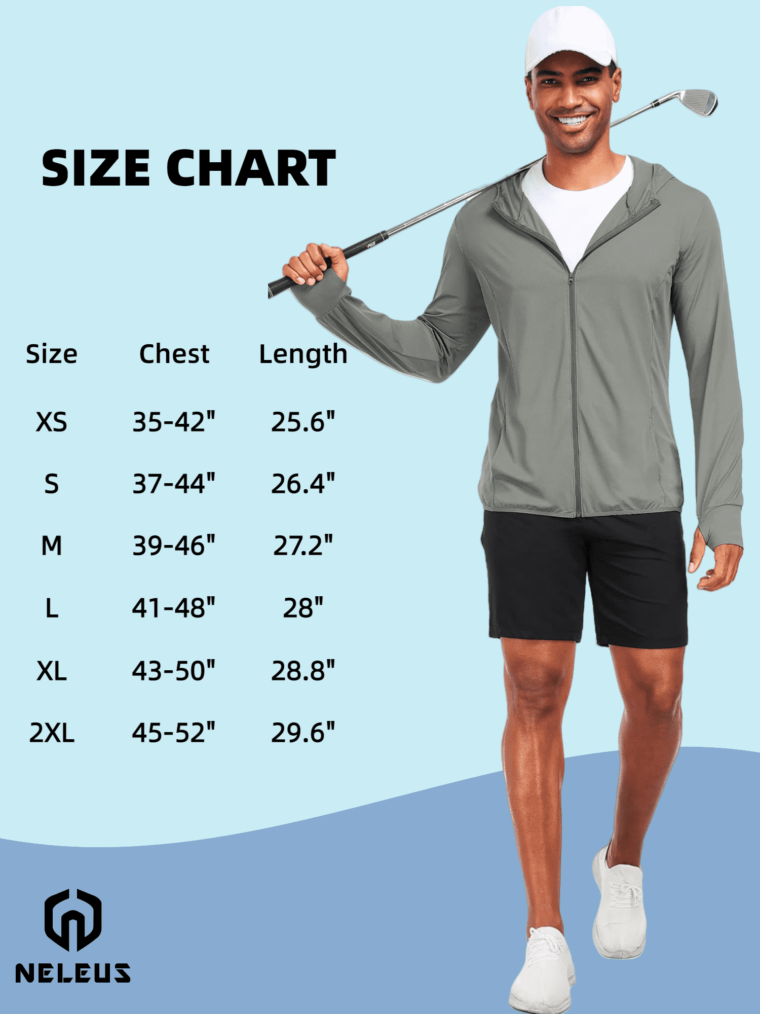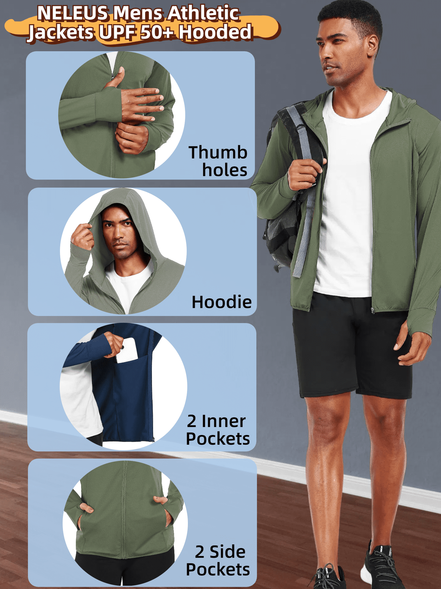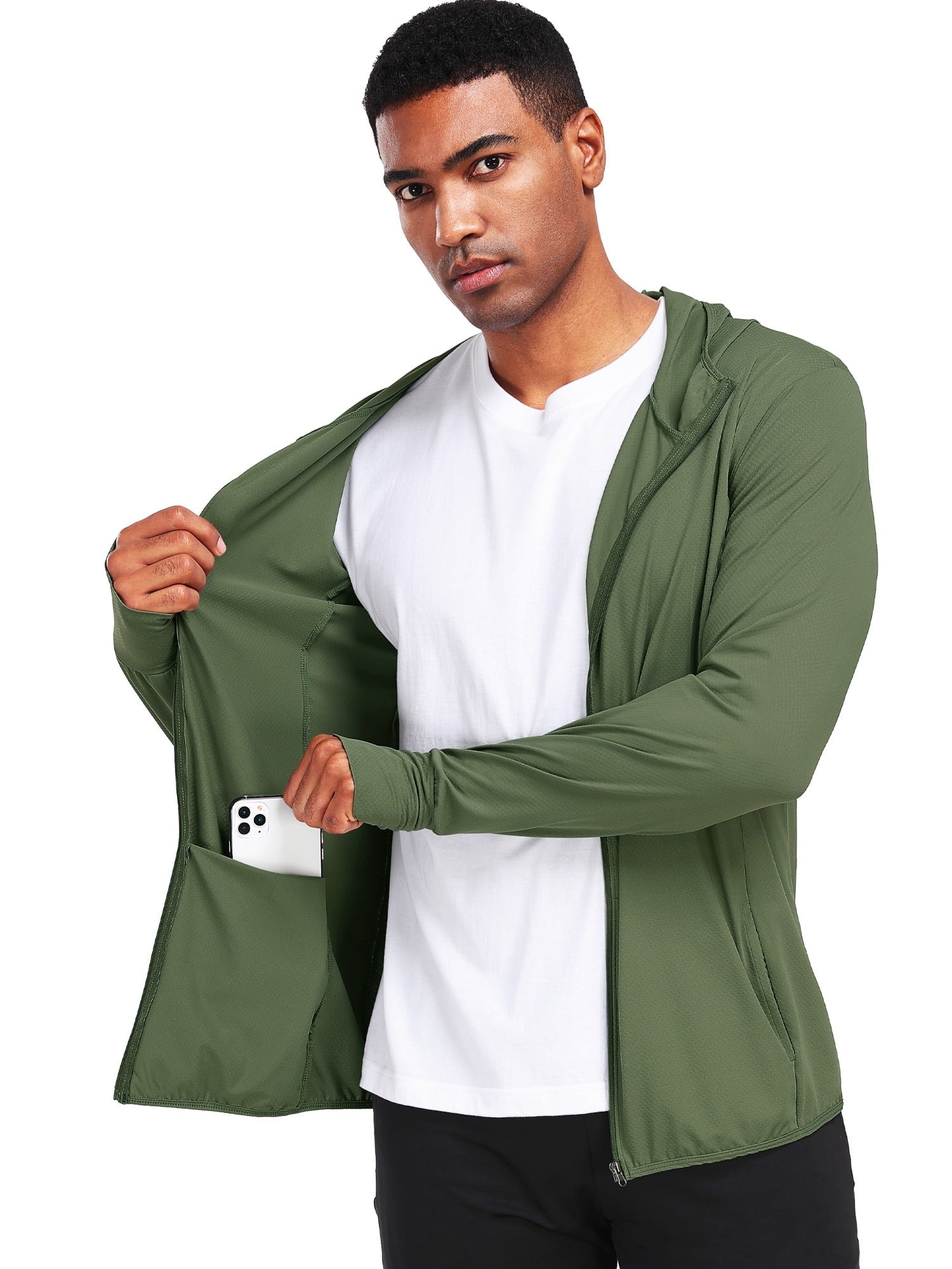 NELEUS Men’s Sun-Protection Jacket, the ultimate outdoor essential for active lifestyles. Designed with practicality and comfort in mind, this high-neck, full-zip jacket features an attached hood for added sun and wind protection, making it perfect for hiking, running, or casual outings. The innovative thumb holes ensure your hands stay covered and secure, while the lightweight, breathable fabric offers superior sun protection without sacrificing comfort. With two spacious inner pockets and two convenient outer pockets, this jacket provides ample storage for your essentials, from keys to phones. Whether you’re exploring the great outdoors or navigating the urban jungle, this versatile jacket keeps you prepared and protected. Its sleek design and functional details make it a must-have addition to your wardrobe.