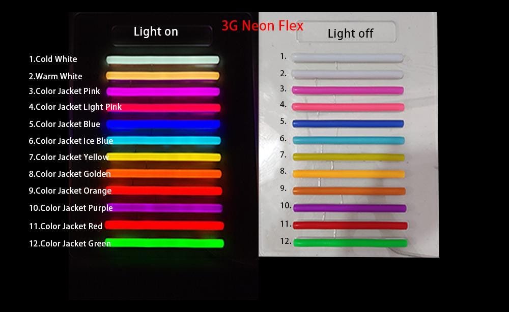 Cool White ,Warm White ,Light Pink ,Bright Pink ,Red ,Orange ,Yellow ,Purple ,Blue ,Ice Blue ,Green |