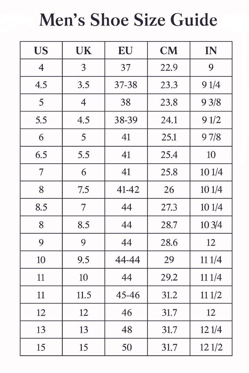 5 US men's ,5.5 US men's ,6 US men's ,6.5 US men's ,7 US men's ,7.5 US men's ,8 US men's ,8.5 US men's ,9 US men's ,9.5 US men's ,10 US men's ,10.5 US men's ,11 US men's ,11.5 US men's ,12 US men's ,12.5 US men's ,13 US men's ,13.5 US men's ,14 US men's ,14.5 US men's ,15 US men's ,15.5 US men's ,16 US men's |