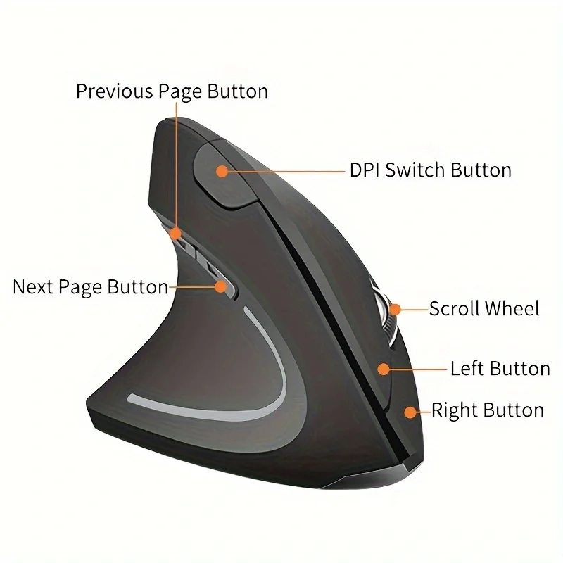 New Vertical 5th Generation Left-Handed Wired Computer Accessory Mouse Ergonomic Design, BTS-911, Left-Handed Wired Black
