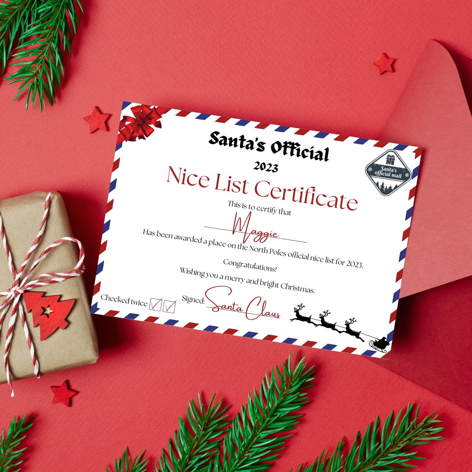 Nice List Certificate | Christmas | Santa Clause | Children's Christmas | North Pole Mail | Printable | Digital Download | PDF | Holiday