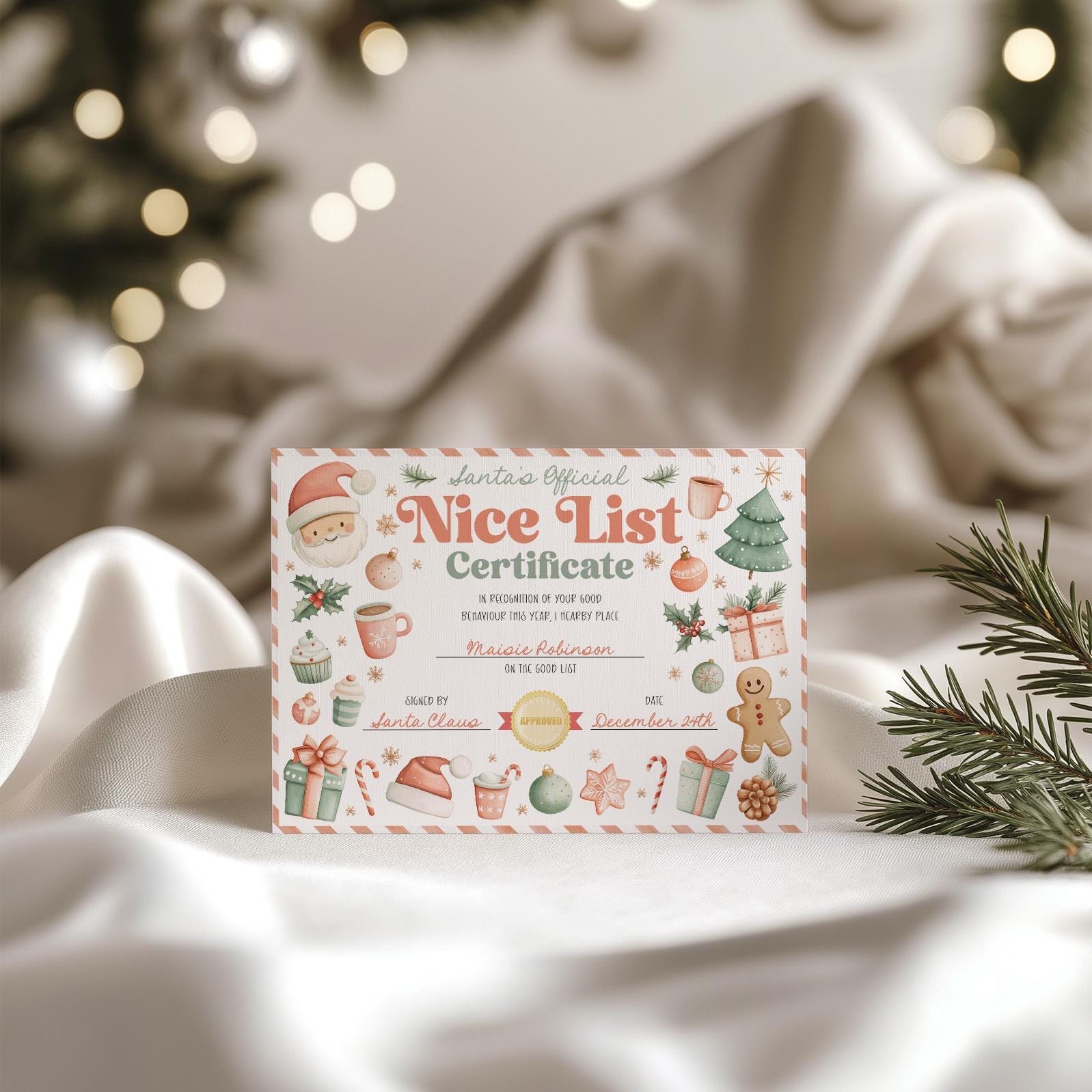 Be the first to review “Nice List Certificate, Editable Santa Claus Official Letter From The Desk Of Santa North Pole Mail Christmas Eve Box Instant Download”