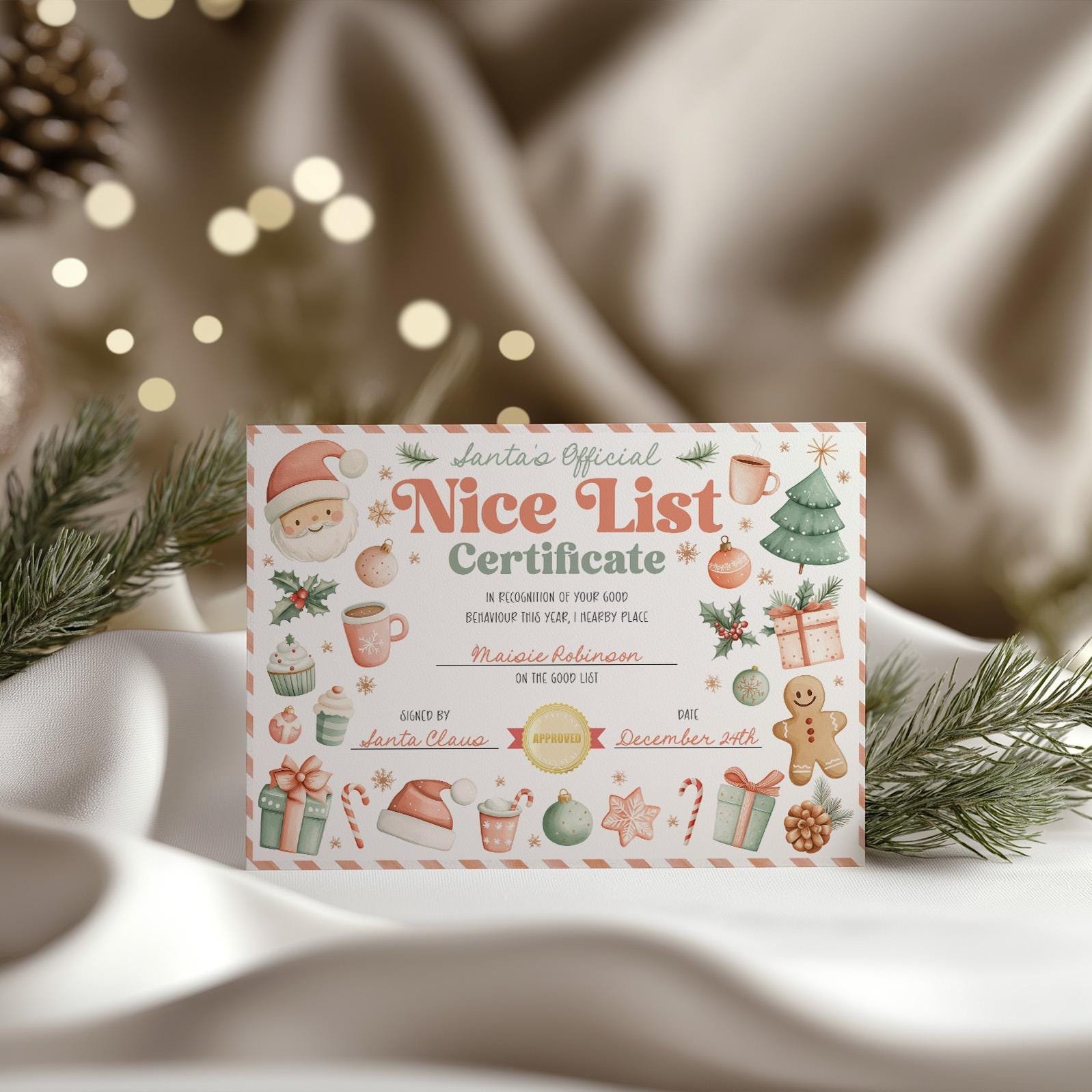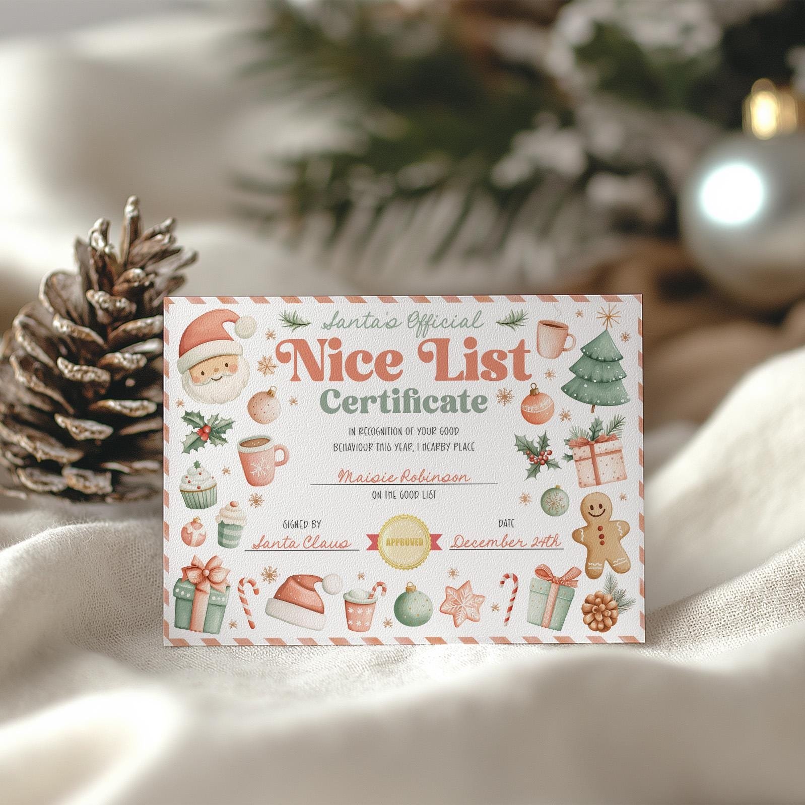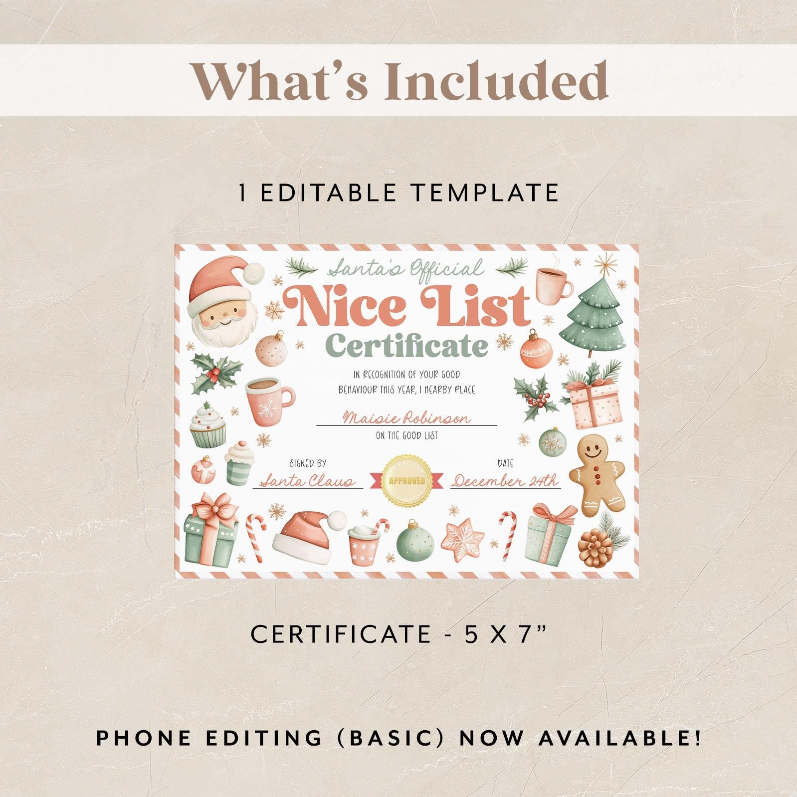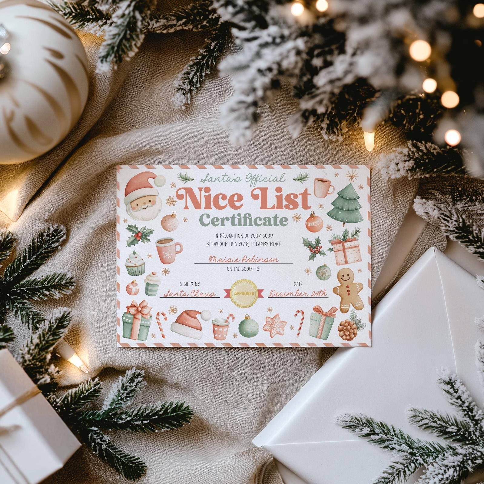 Nice List Certificate, Editable Santa Claus Official Letter From The Desk Of Santa North Pole Mail Christmas Eve Box Instant Download