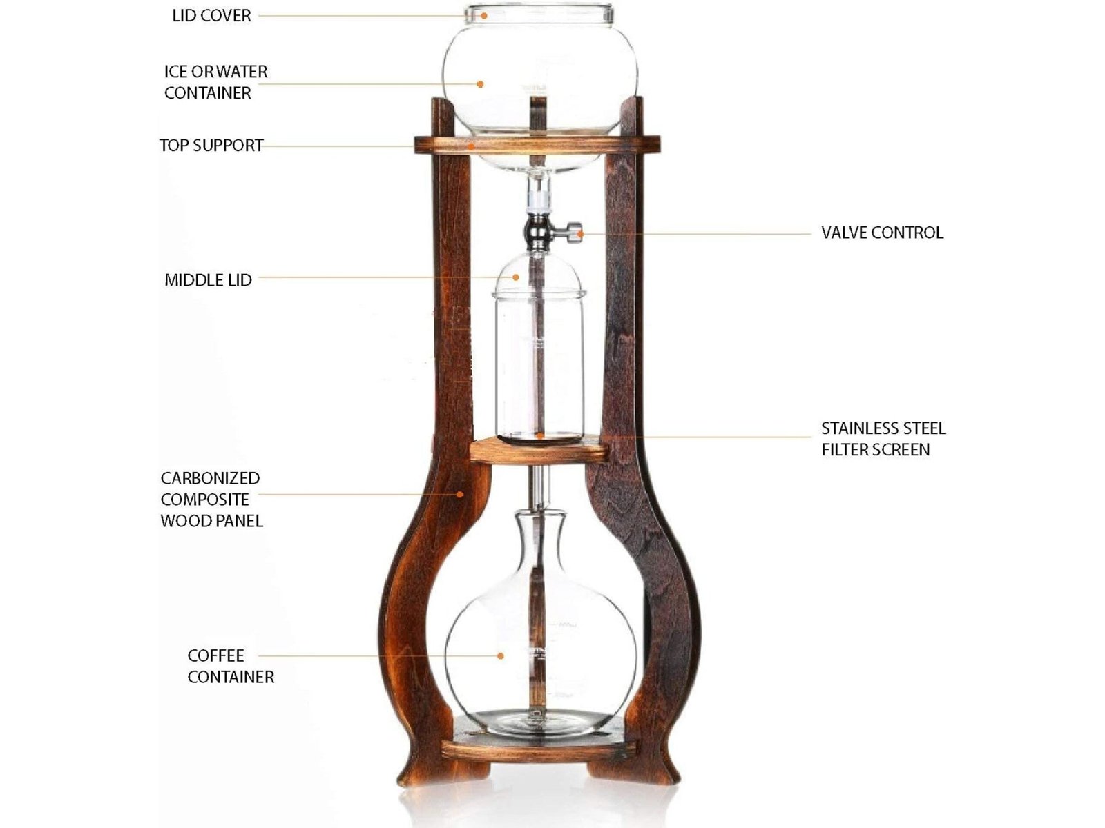 Nispira Retro Iced Cold Brew Coffee Maker Wooden Drip Tower 600 ML
