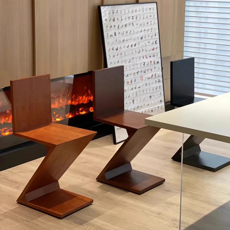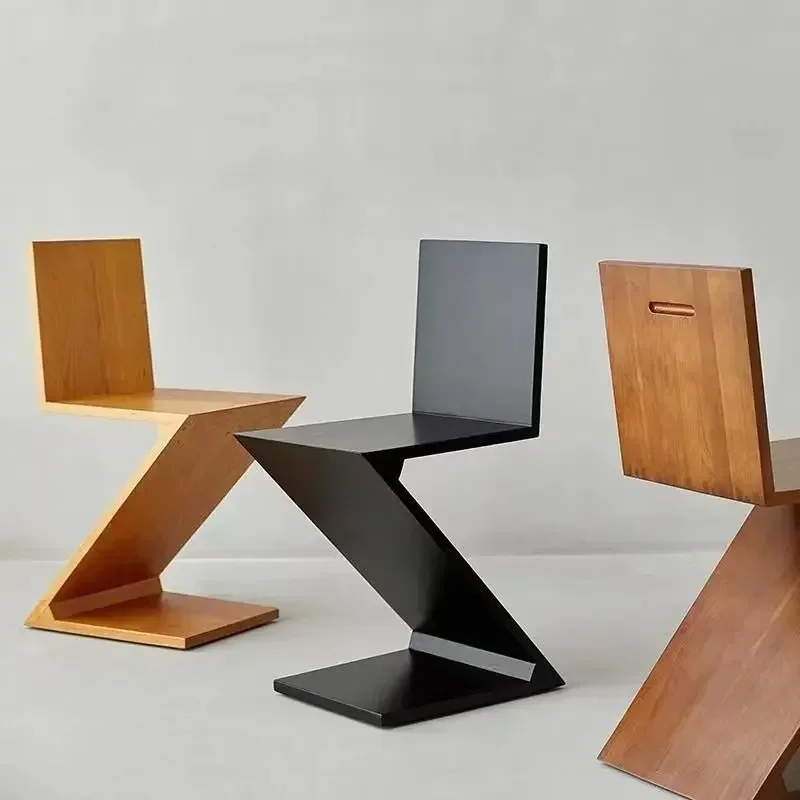 Nordic Light Luxury Z-Shaped Solid Wood Chair | Creative Dining/Sofa Stool | Living Room/Side Table Use | Home Furniture