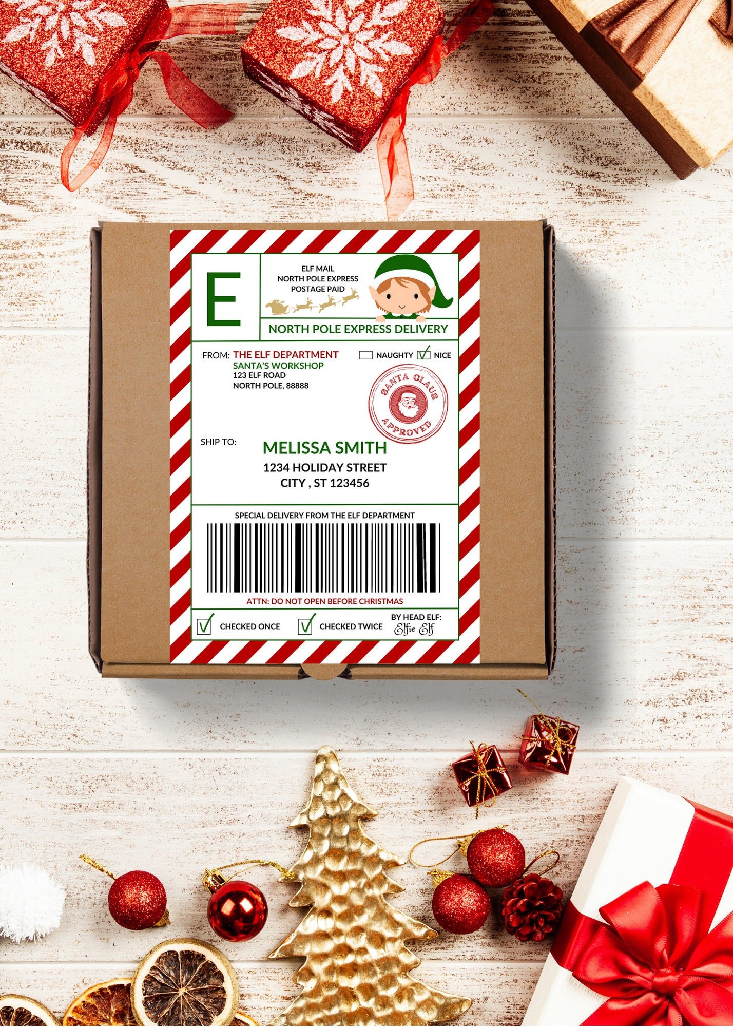 North Pole Shipping Label Printable, Editable Santa Shipping Label, Elf Mail, Digital Download