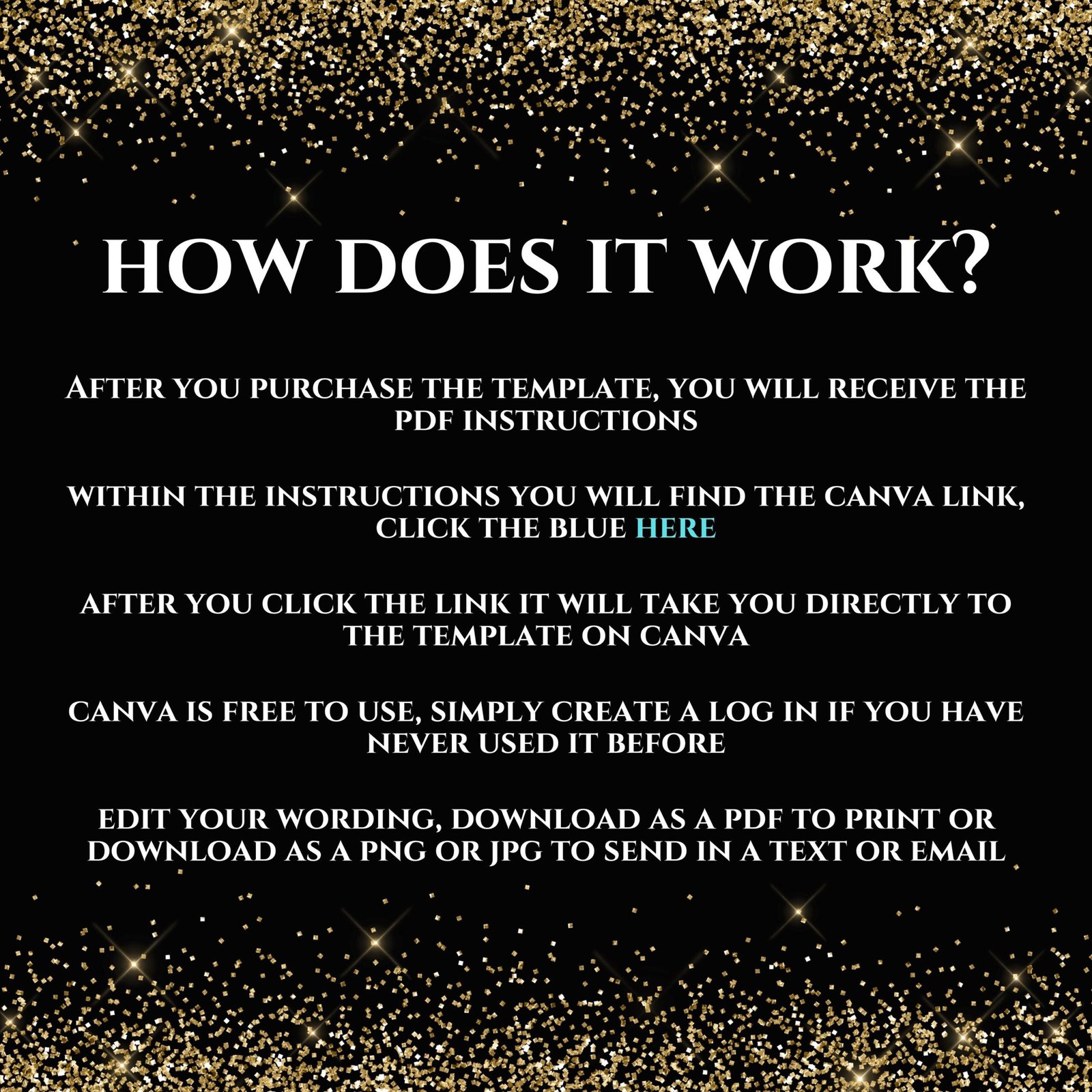 ♥ Once purchased, you will receive pdf instructions. Within the instructions will be a link that will take you to Canva.com where you will be able to edit the template. You will be able to edit wording, font, and font size, Save your template and download. You can use these downloads to print, email or text to guests. Please be sure to follow the instructions carefully.