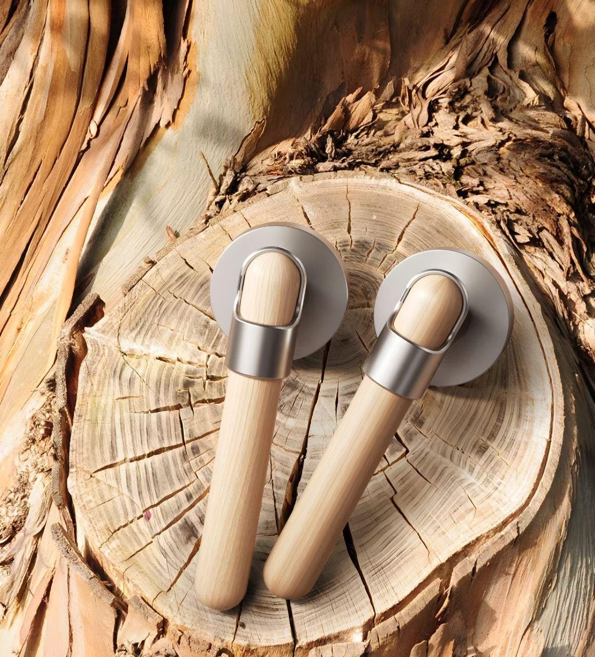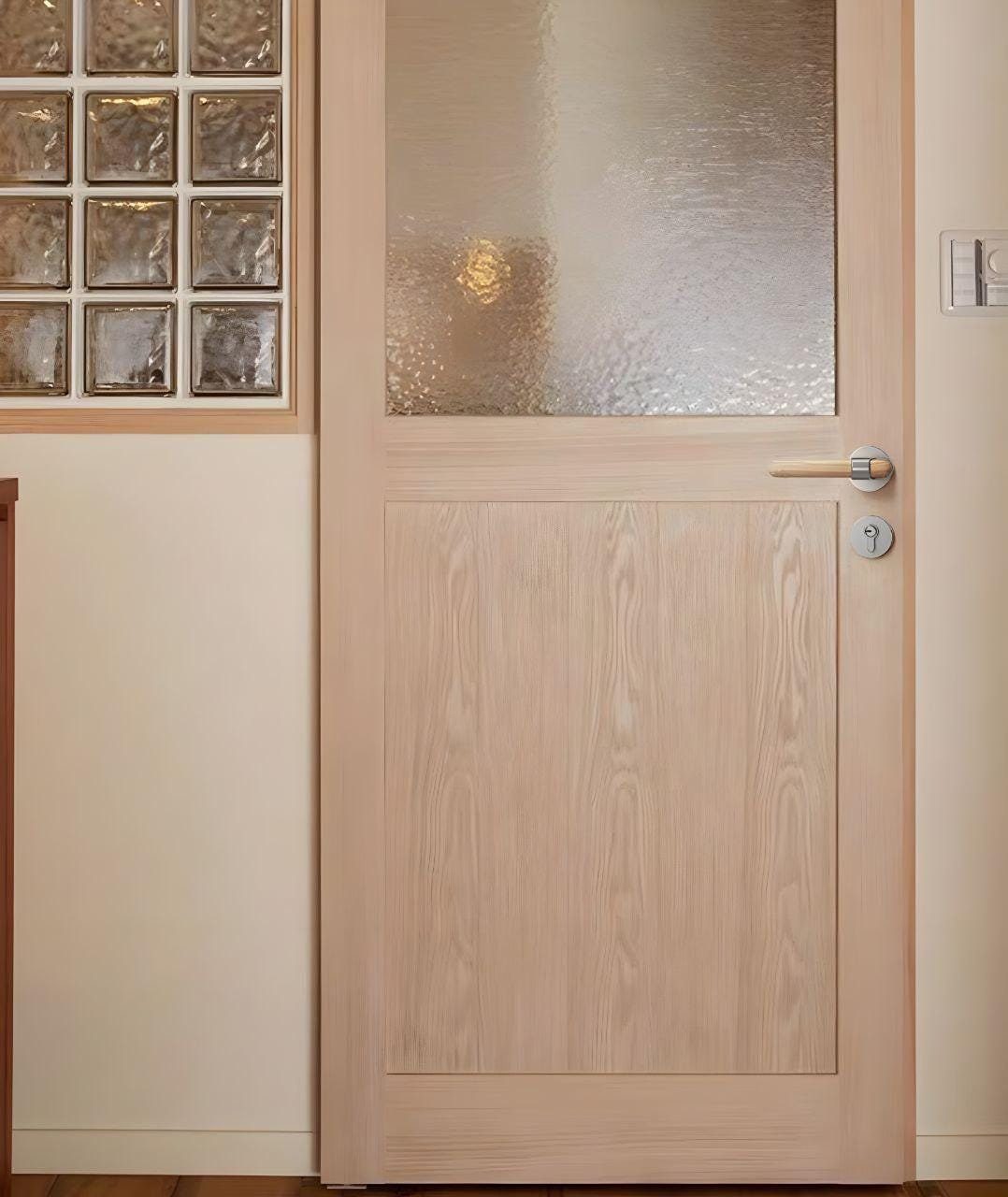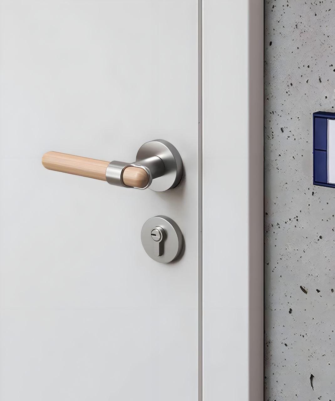 Oak Wood Door Lever with Brushed Nickel Lock