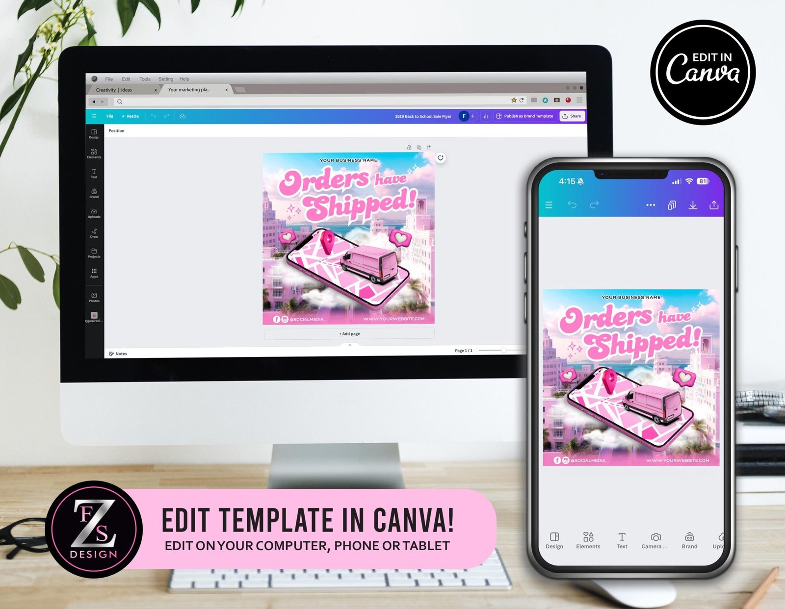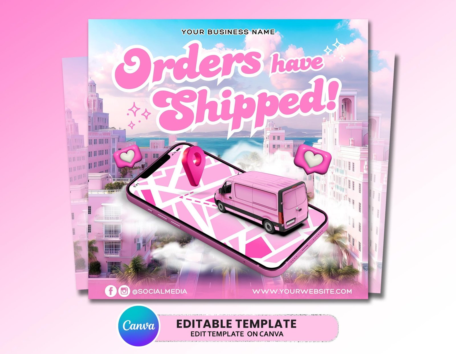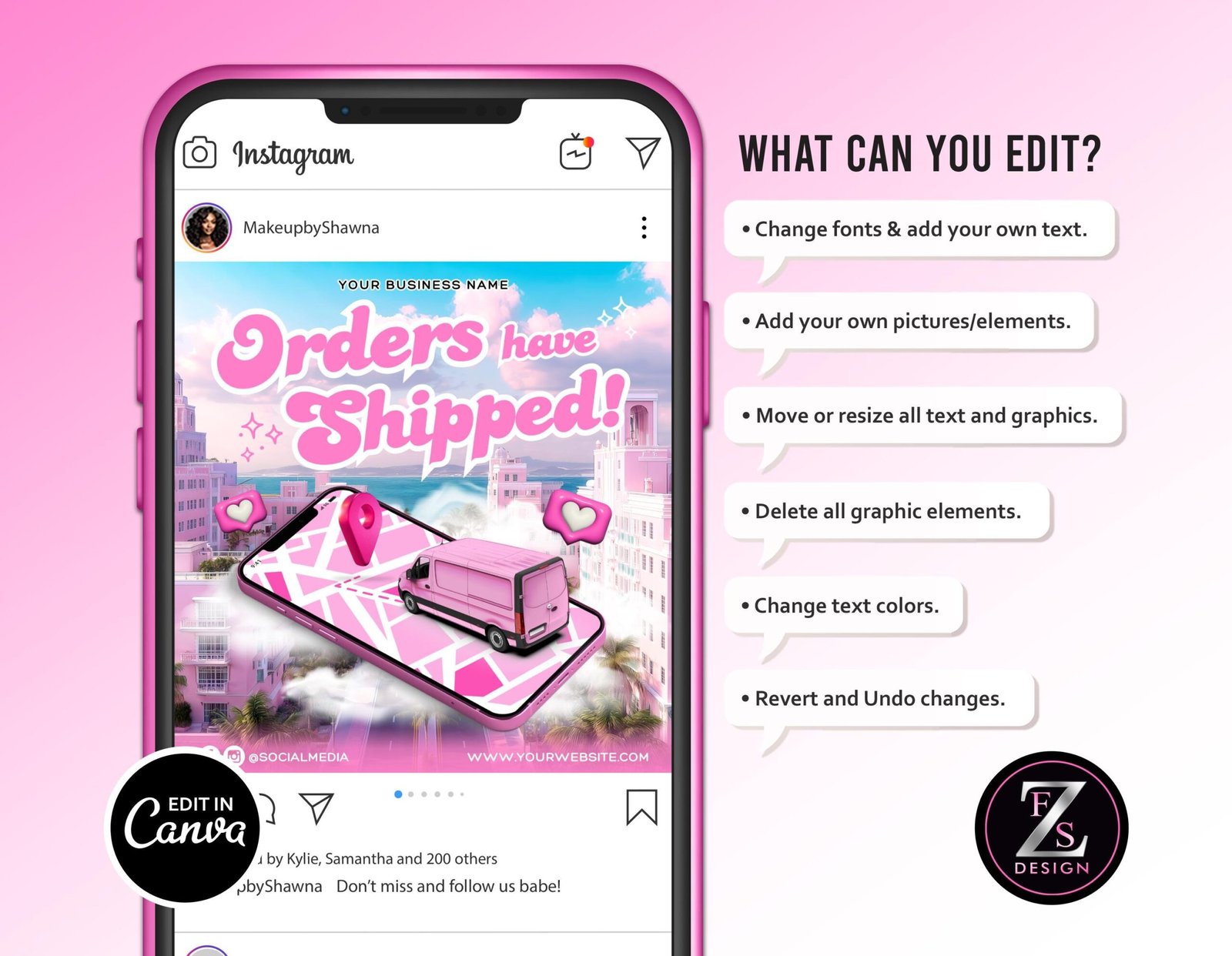 Orders Have Shipped Flyer, DIY Social Media Delivery Hair Makeup Artist Lashes Nails Braids Editable Flyer Template