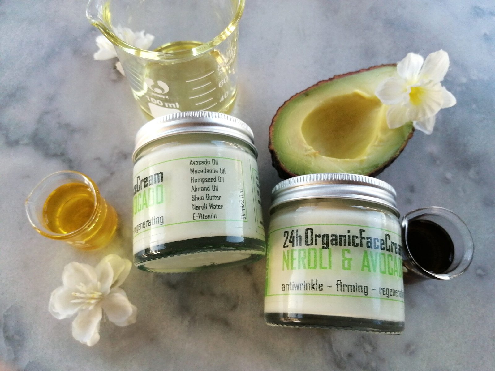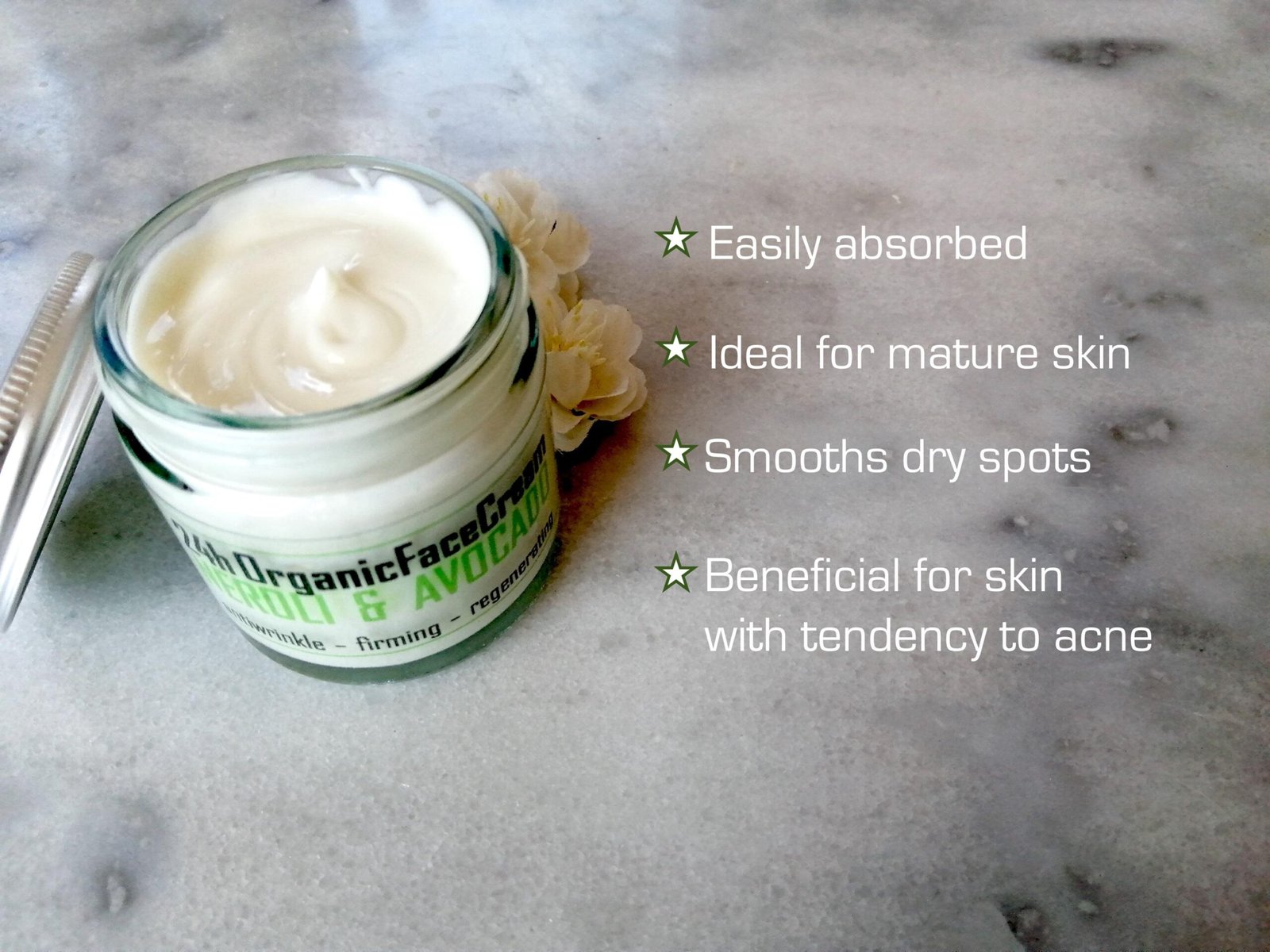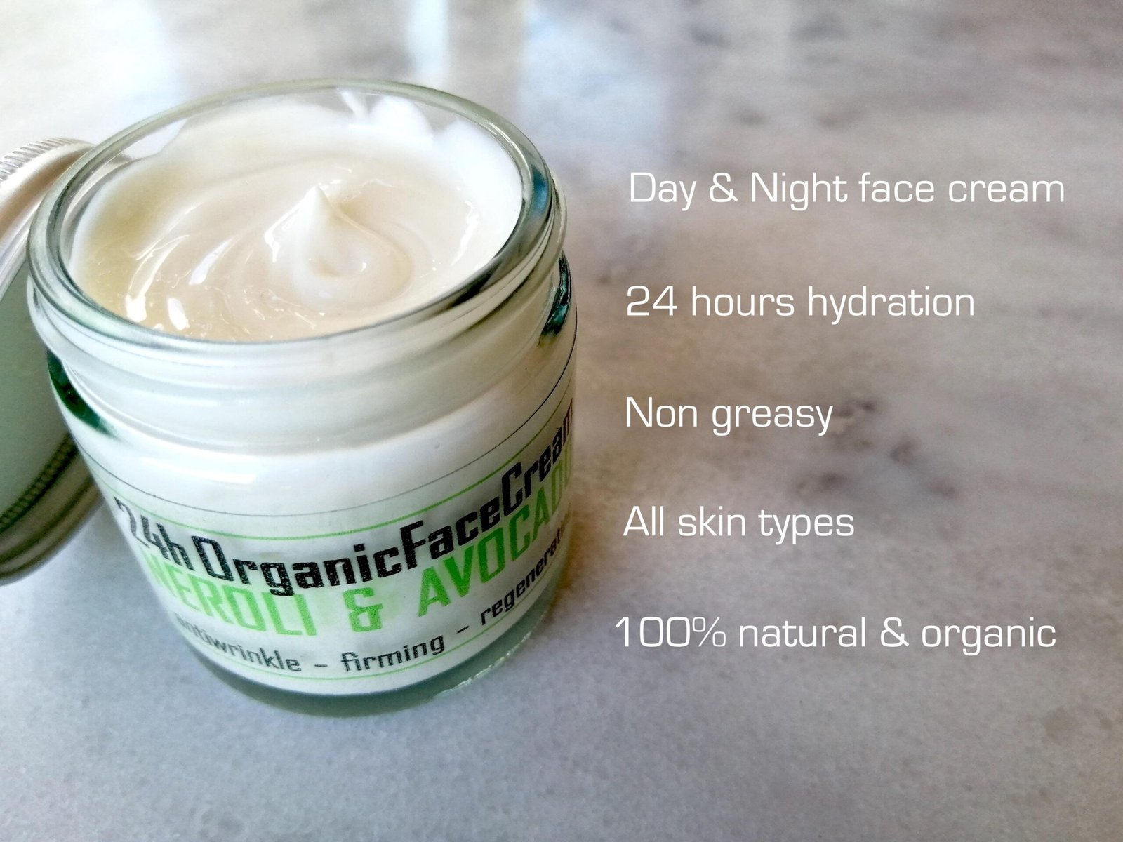 Organic Face Cream: Avocado Oil & Neroli Water, Anti-Wrinkle Moisturizer