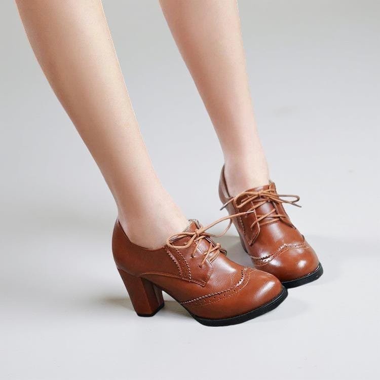 Be the first to review “Oxfords High Block Heels Shoes Womens Wingtip Lace Up Pumps Brogues Shoes”