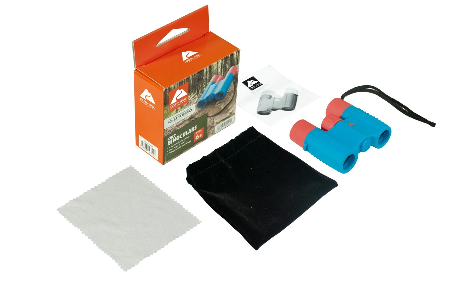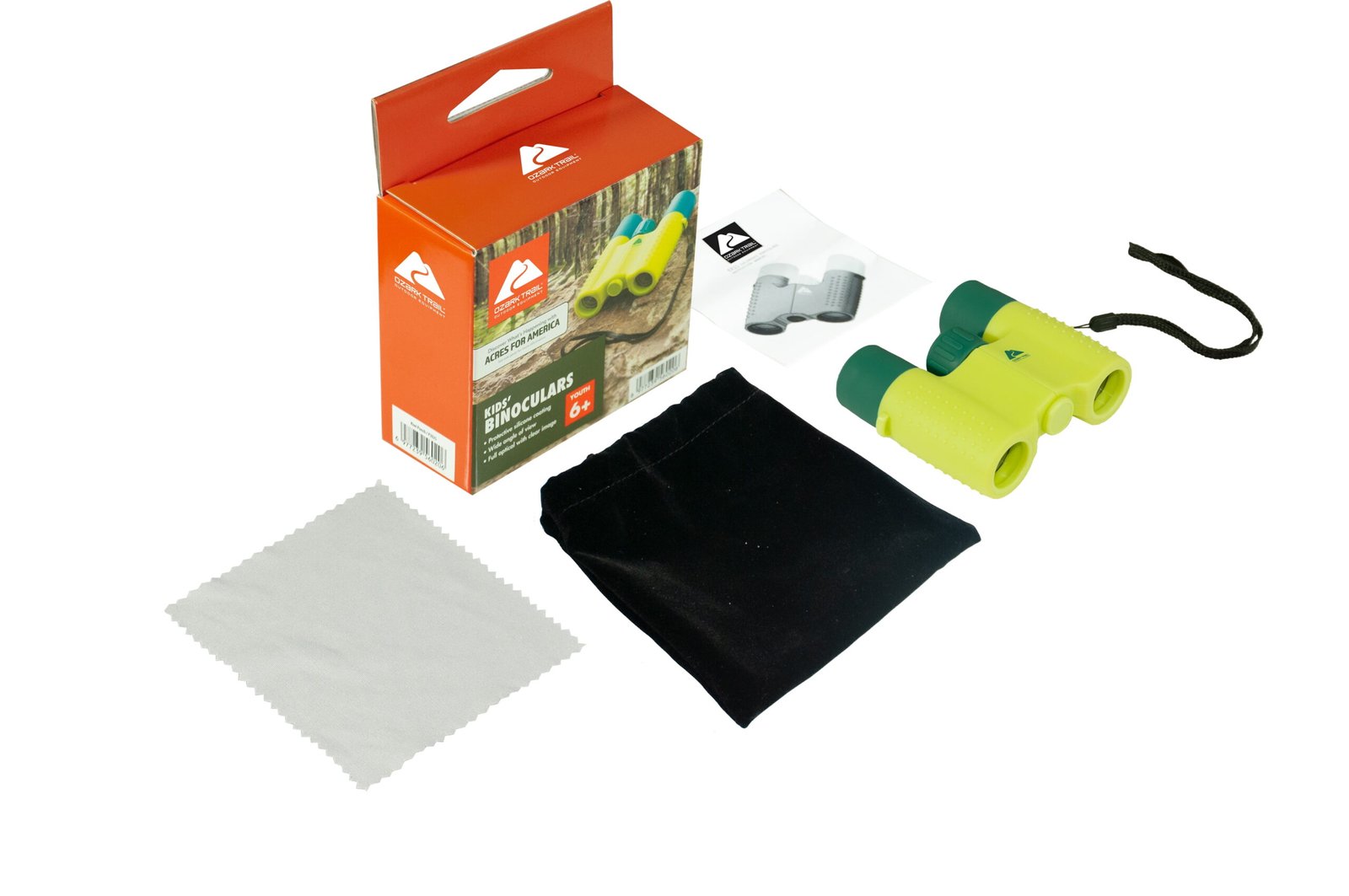 SUPERIOR SAFETY – Slicone Eyepieces are included for eye protection so children don’t hurt their eyes or face. The carrying bag and fit on your belt and with Bungee Shock Cord Hook can Hang it on the schoolbag. BEST MAGNIFICATION and VALUE – This product has a super magnification of 6X with an amazing view and comes as a bundle. The Carrying bag allows for protective storage and easy portability when travelling. SHOCK PROOF – Durable binoculars that can withstand drops and falls on floors due to silicone armor that absorbs shock. There is extra coating surrounding the eyepieces compared to other brands and provides better protection of the lens during falls. EASY TO FOCUS – Designed for children to use easily. Ozark Trail Binoculars can be folded to MATCH eye to eye distance of child. 100 % SATISFACTION GUARANTEE – Includes accessories such as wrist strap. Great for bird watching, learning, star gazing, hunting, sports games, theaters, boat rides, hiking, travelling, summer fun and enjoying the wonderful world.