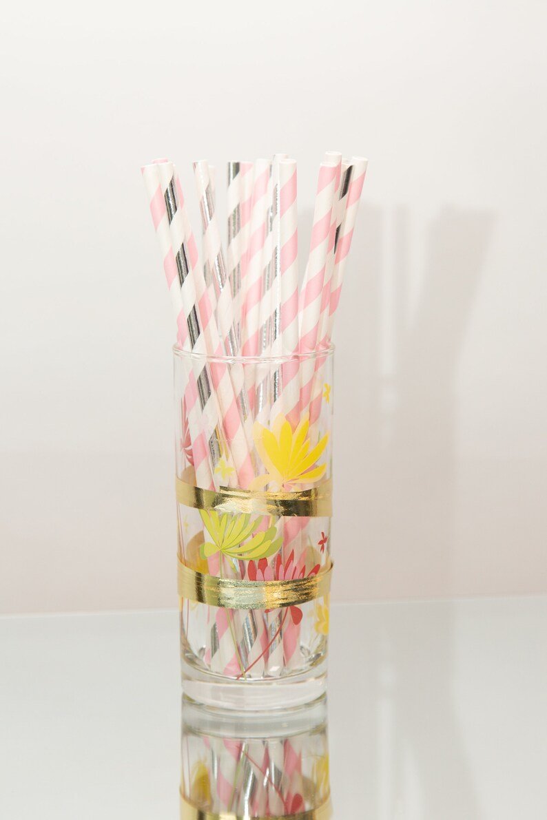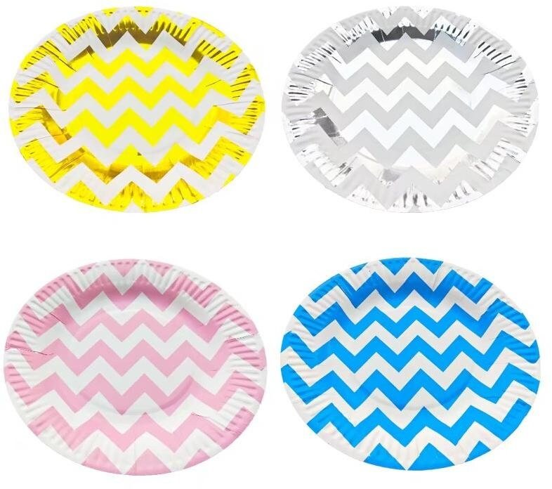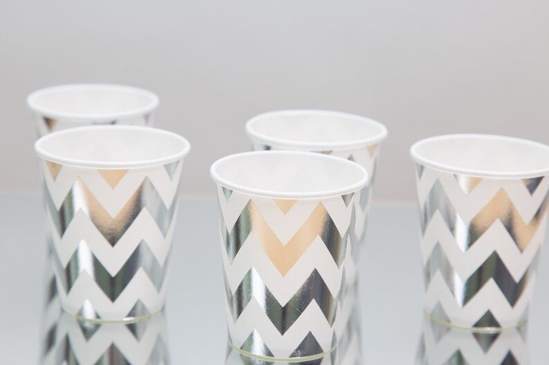 pack of 10 Chevron Stripe Paper table supplies: Straws Cups Plates Bridal Baby Shower Birthday Party 1 2 3 16 21 30 40 decor Silver Gold Pink