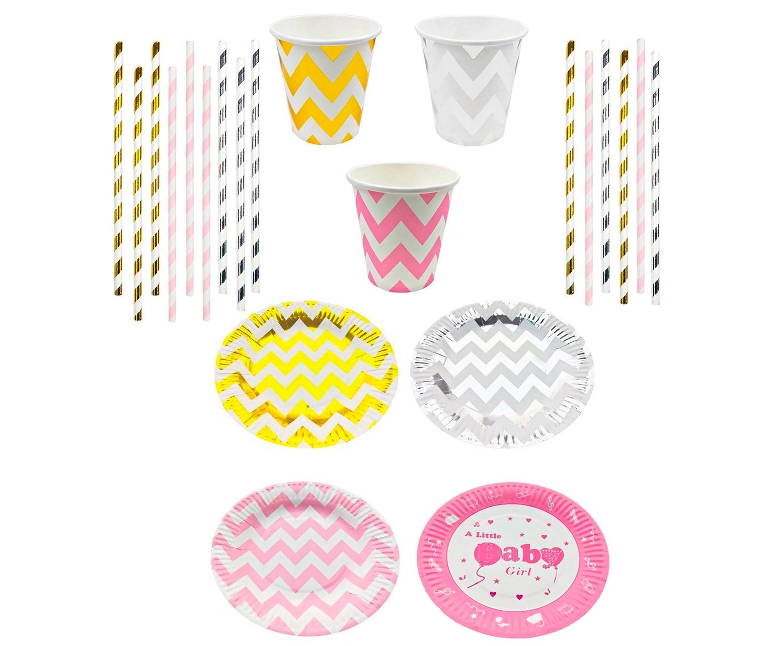 pack of 10 pcs Striped Paper Straws, 10 pcs Chevron Paper Plates, 10 pcs Chevron Paper Cups apart or in a set 30pcs : 10 Straws/10 cups/10 plates