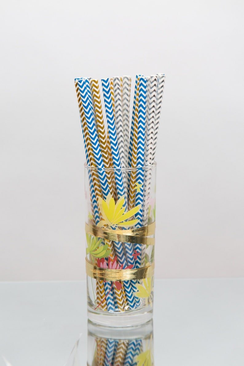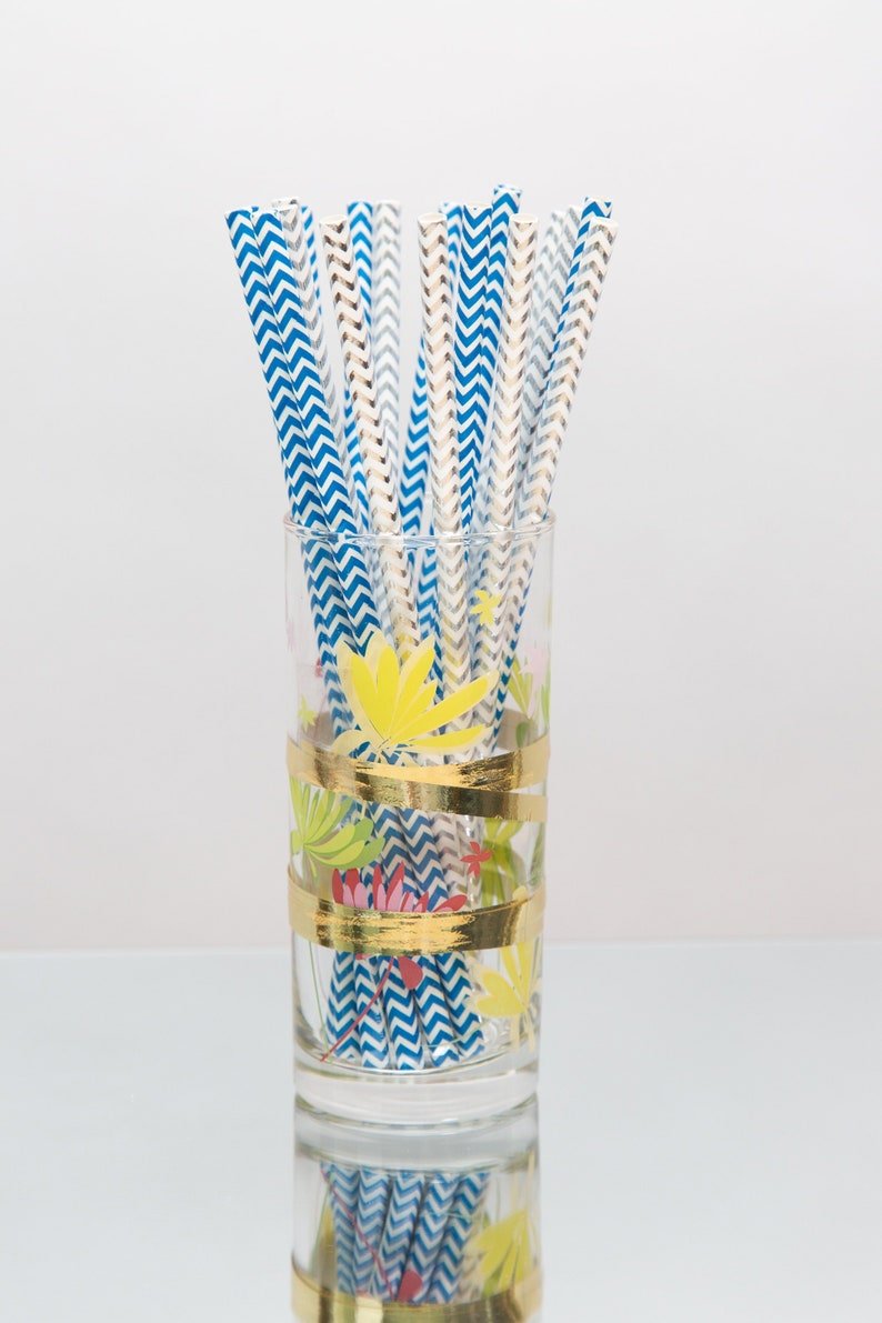 pack of 10 Chevron Paper Straws Cups Plates Chic Bridal Baby Shower Birthday Party 1 2 3 16 21 25 30 40 60 decor Silver Blue Bachelorette