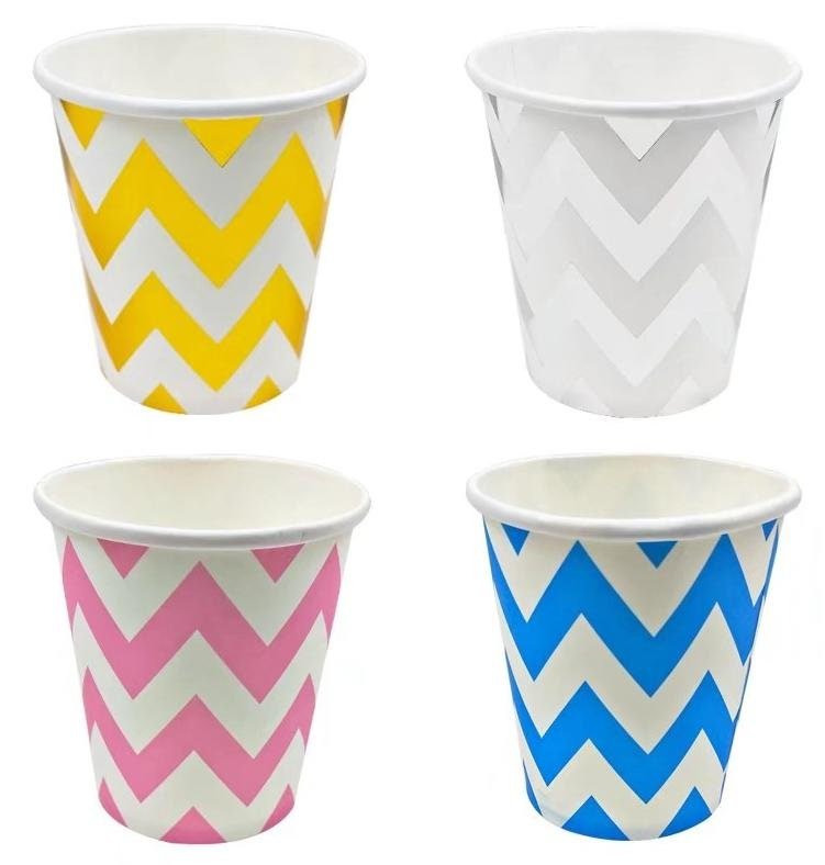 pack of 10 pcs Chevron Paper Straws, 10 pcs Chevron Paper Plates, 10 pcs Chevron Paper Cups apart or in a set 30pcs : 10 Straws/10 cups/10 plates