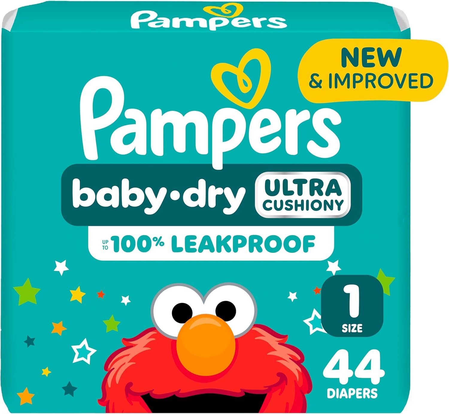 Pampers Diapers – Baby Dry – Size 1, 44 Count, Absorbent Disposable