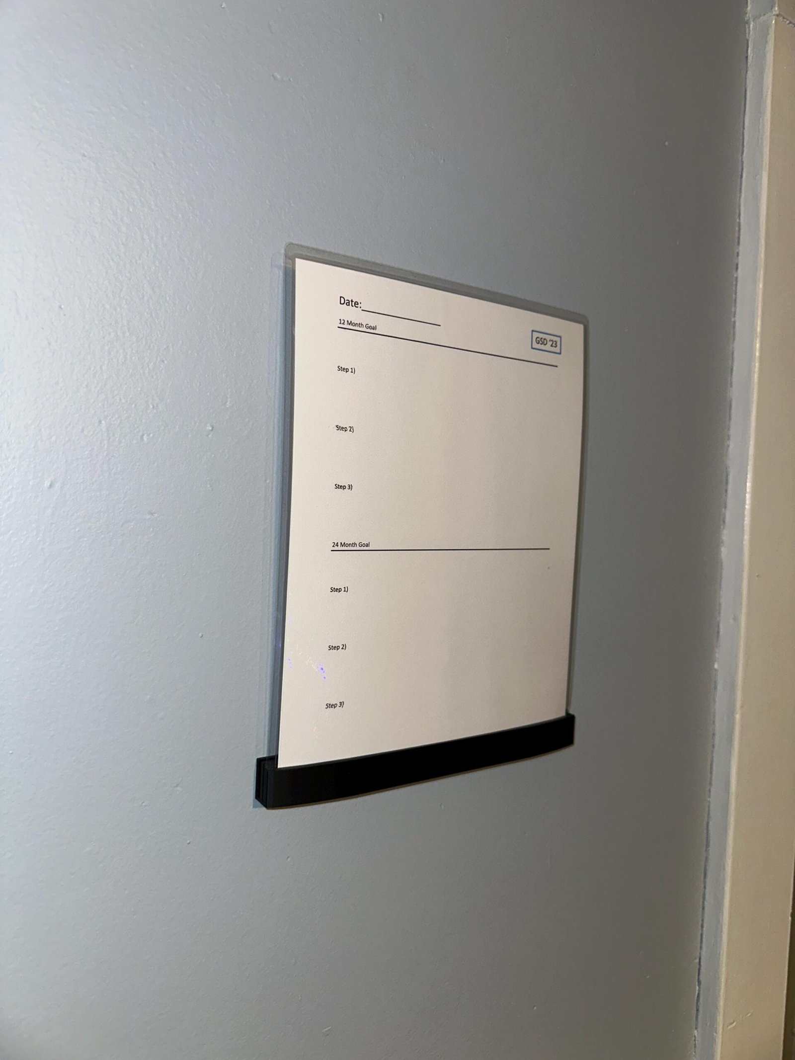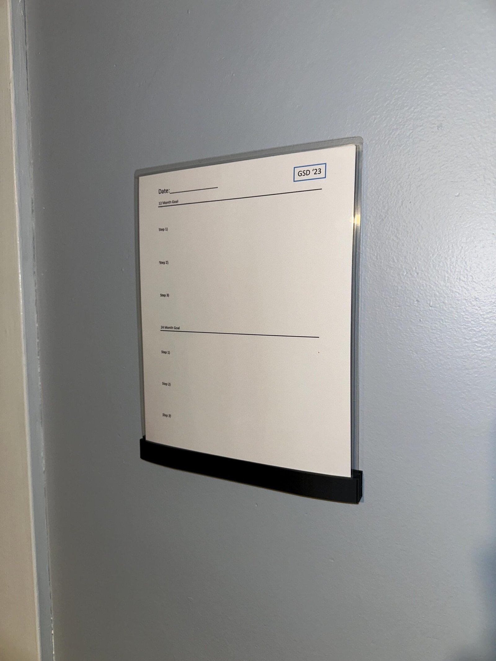 This unique paper stand is designed to hold heavy weight paper stock or a laminated sheet so you can create your own custom whiteboard or review notes. This set will come with one thicker curved style holder and one streamlined thin version. They can be stood on a desk or affixed to a wall using 3M fasteners or screws. Set also includes a template for ensuring level hanging and easy install if attaching to a wall.