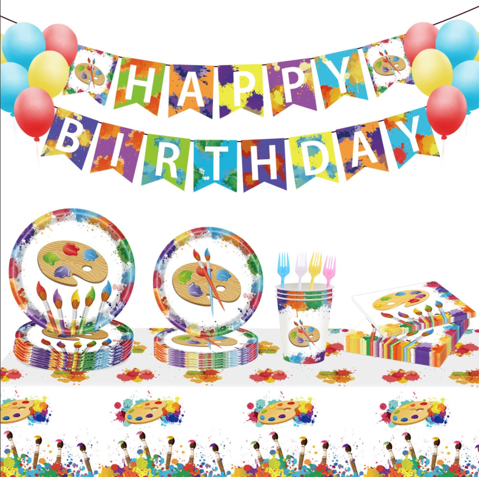 Party Tableware Art Palette Painting Party Supplies Birthday Decorations Paper Plates Napkins Banner Disposable Dinnerware