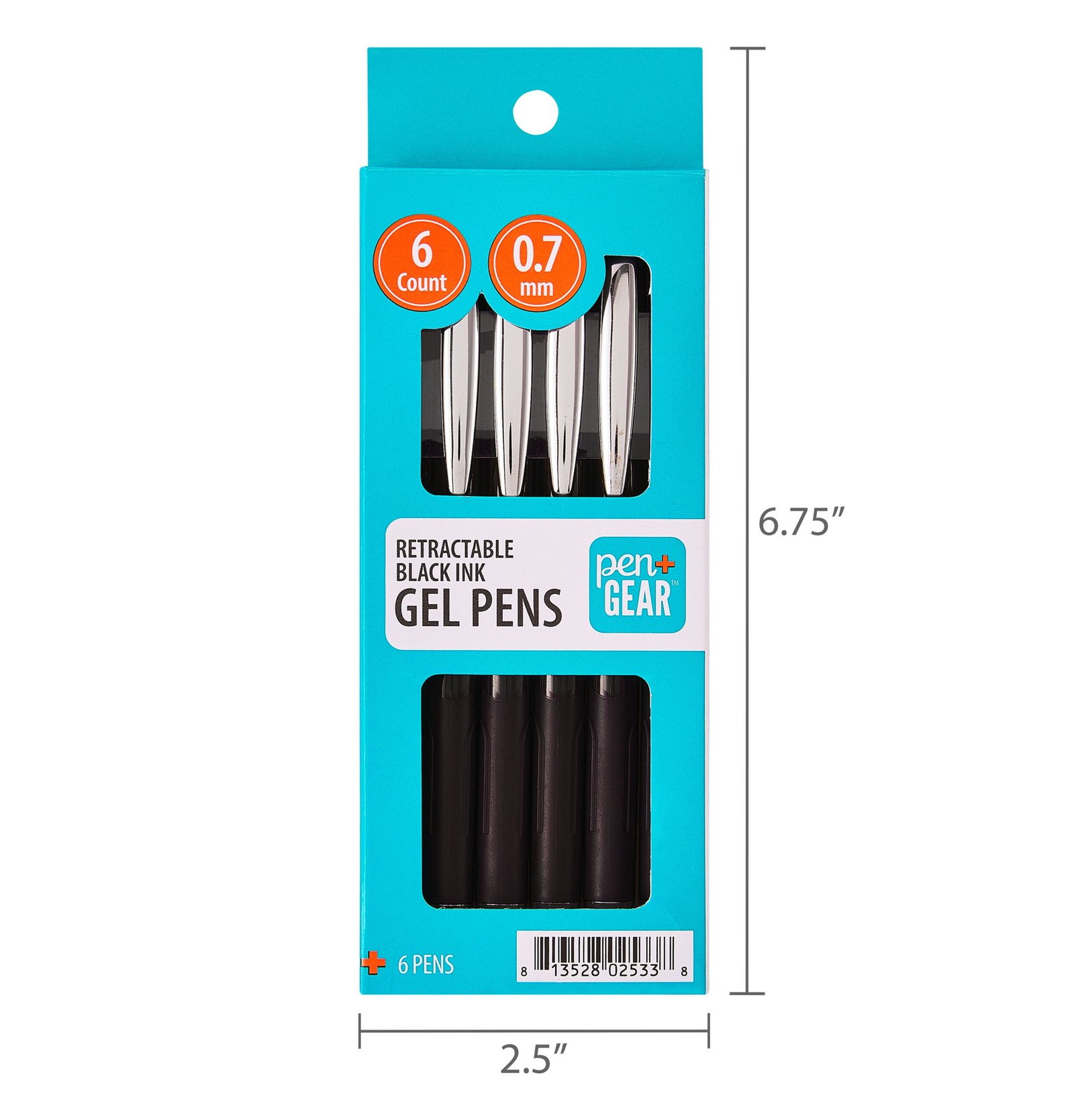 - Pen+Gear Retractable Gel Pens, Medium Point, 0.7 mm, Black, 2 Count