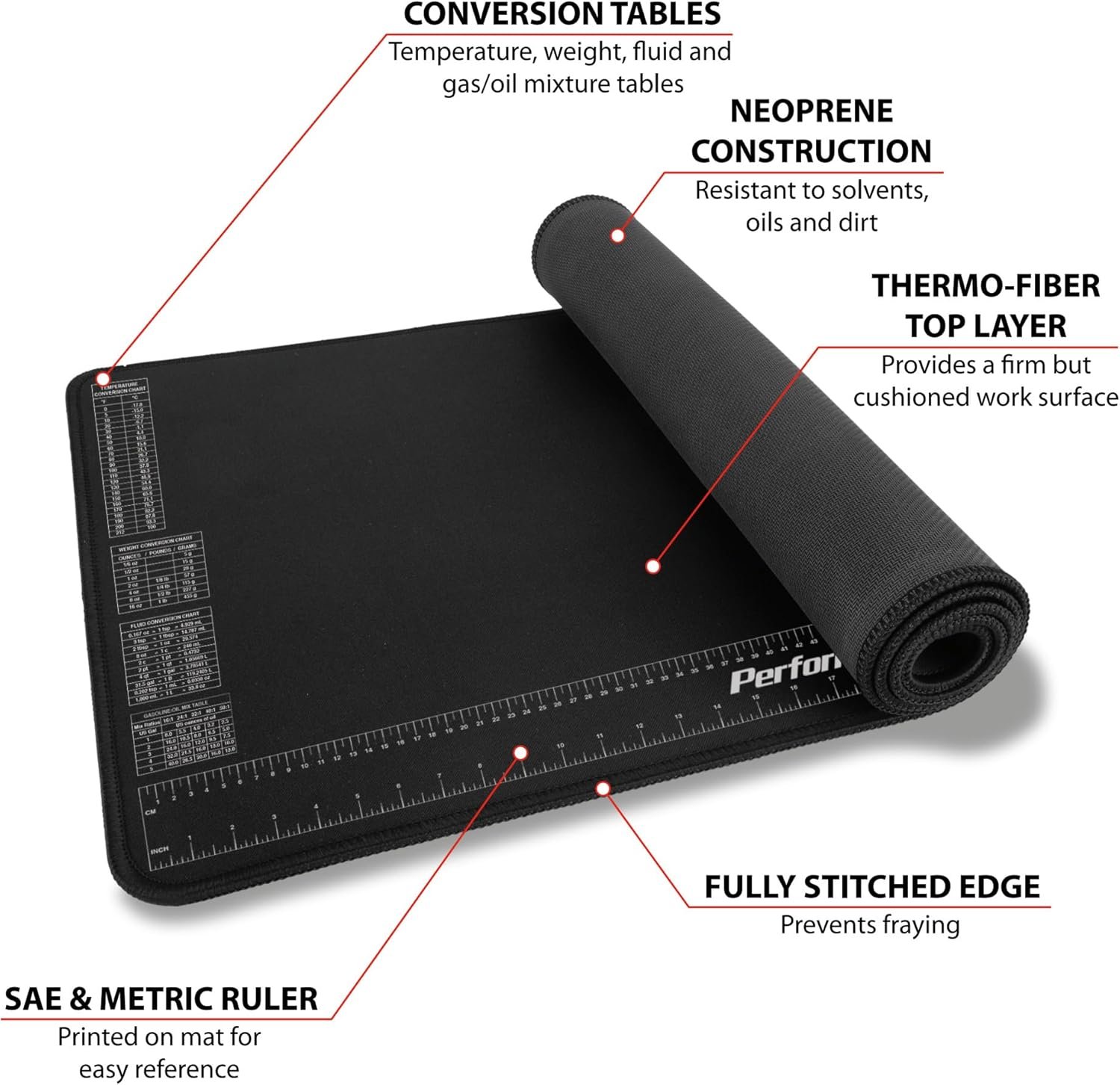 Performance Tool W88977 Neoprene Mat with Ruler and Reference Charts,