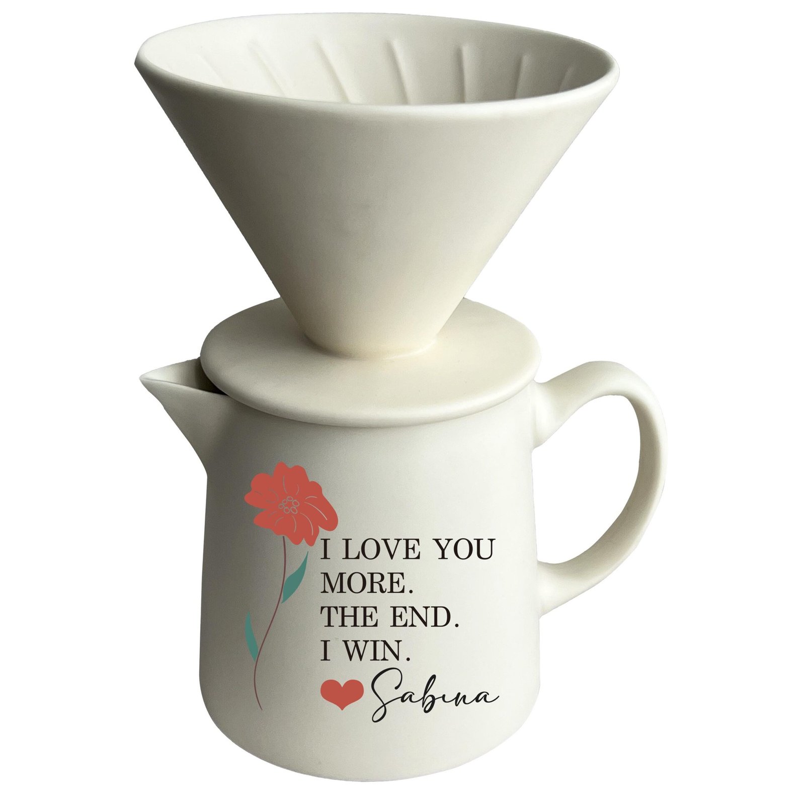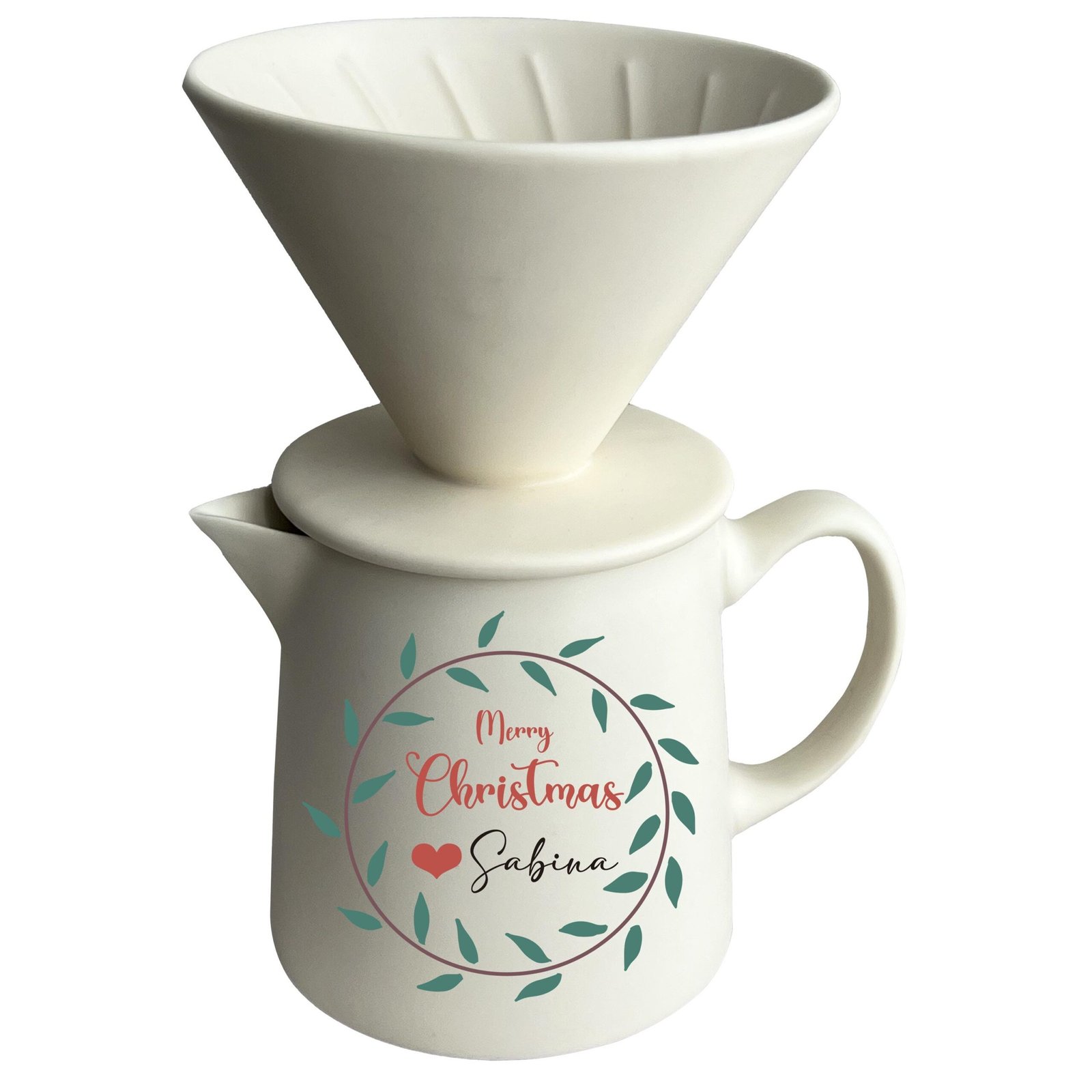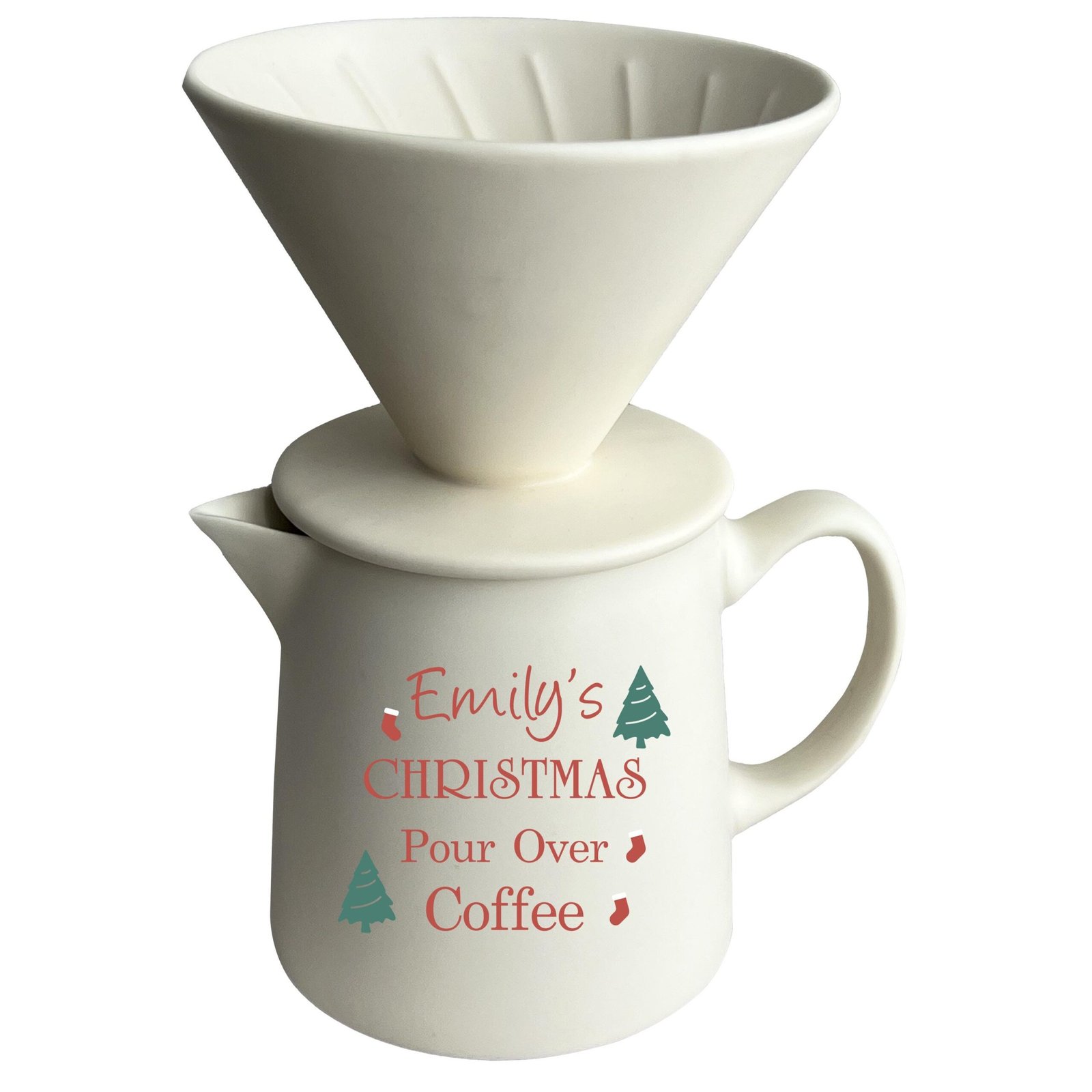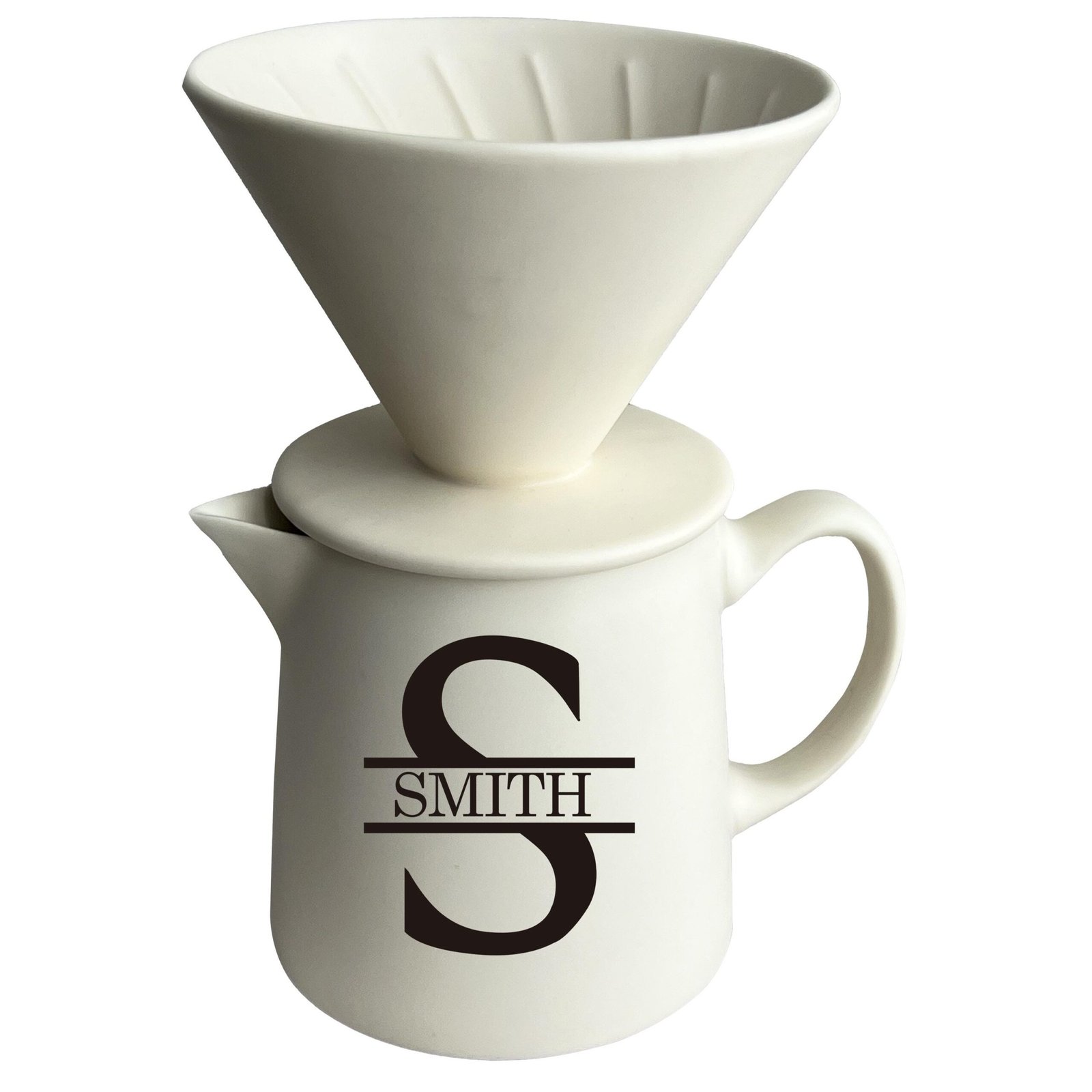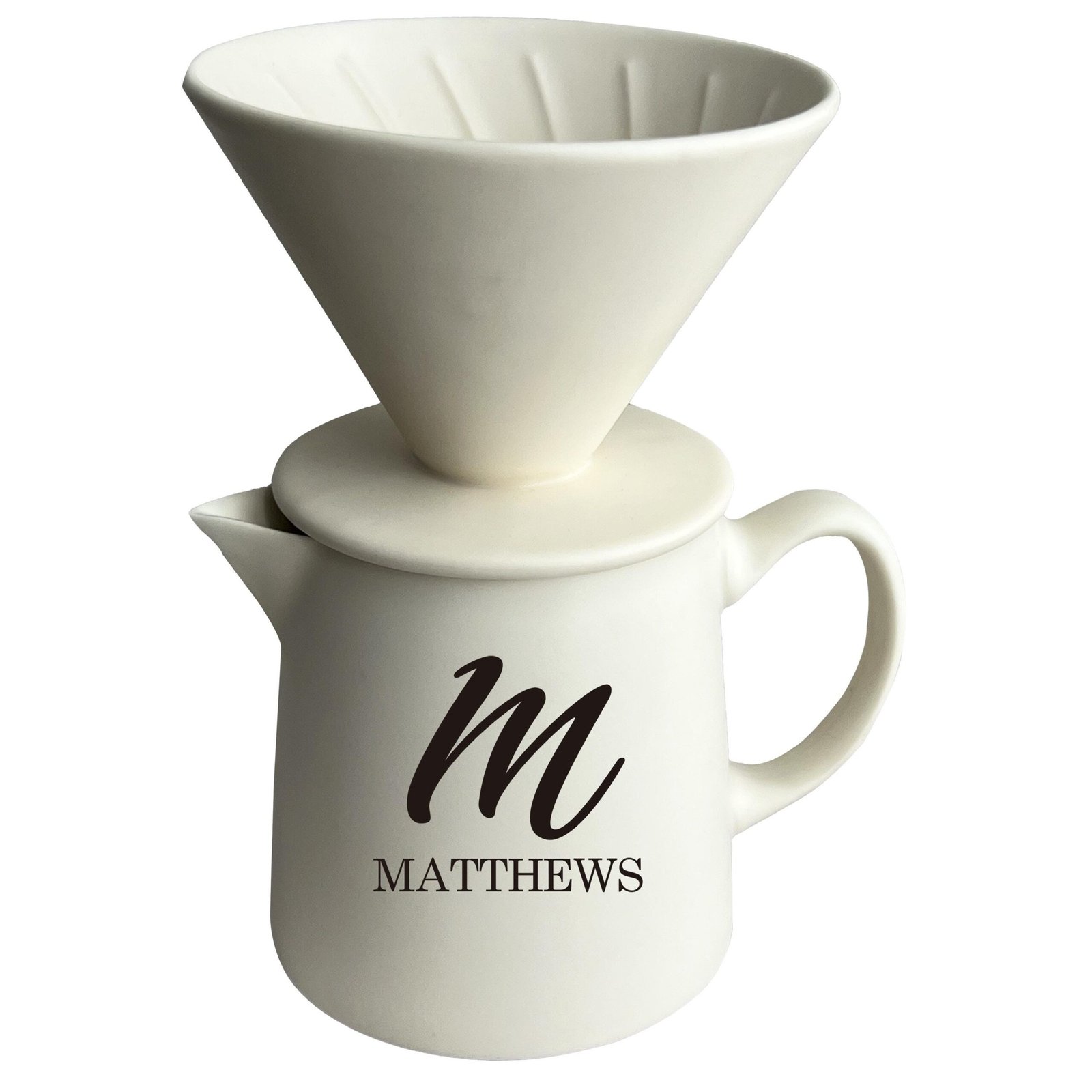 Personalized Coffee Maker Dripper, Ceramic Pour Over with Filter Manual Brew Mother's Day Birthday Grandma Father Monogram Christmas Gift