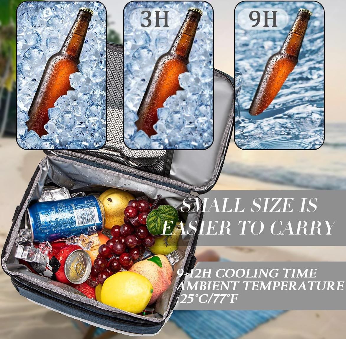 Soft Cooler Insulated Bag: This soft cooler bag is ideal for keeping food, drinks, ice and meals cool during camping, beach vacations, picnics, road trips, work, office and travel. Large capacity, can hold up to 18 cans or multiple meals. Enough to hold ice packs and ice cubes to keep your food fresh all day. Portable soft cooler bag comes with adjustable reinforced soft shoulder straps, Velcro handles.