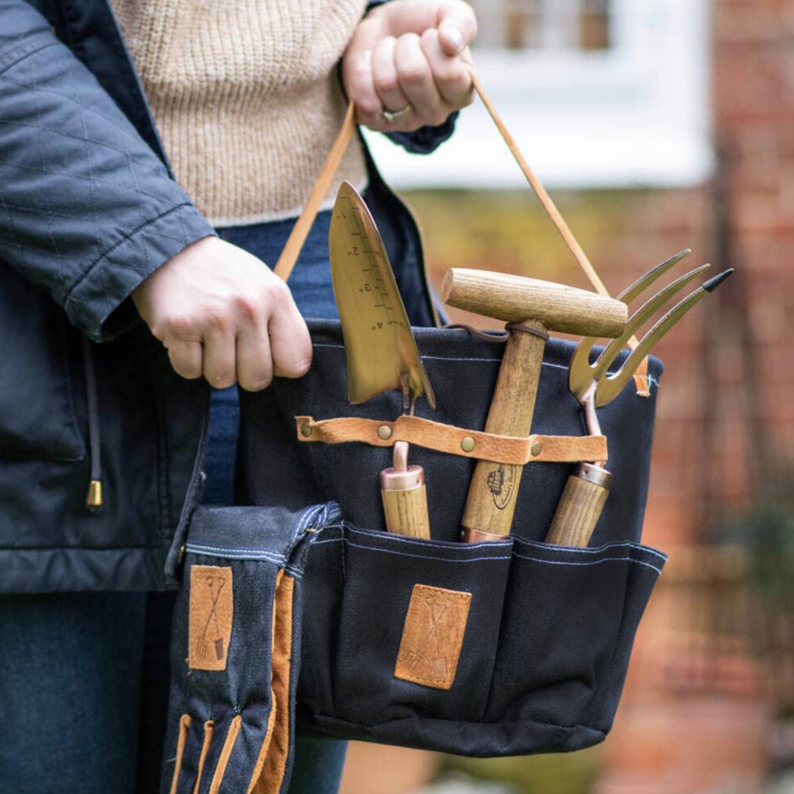 This denim garden tool bag has many spacious compartments to store garden tools. Easy to carry around the garden thanks to the sturdy handle