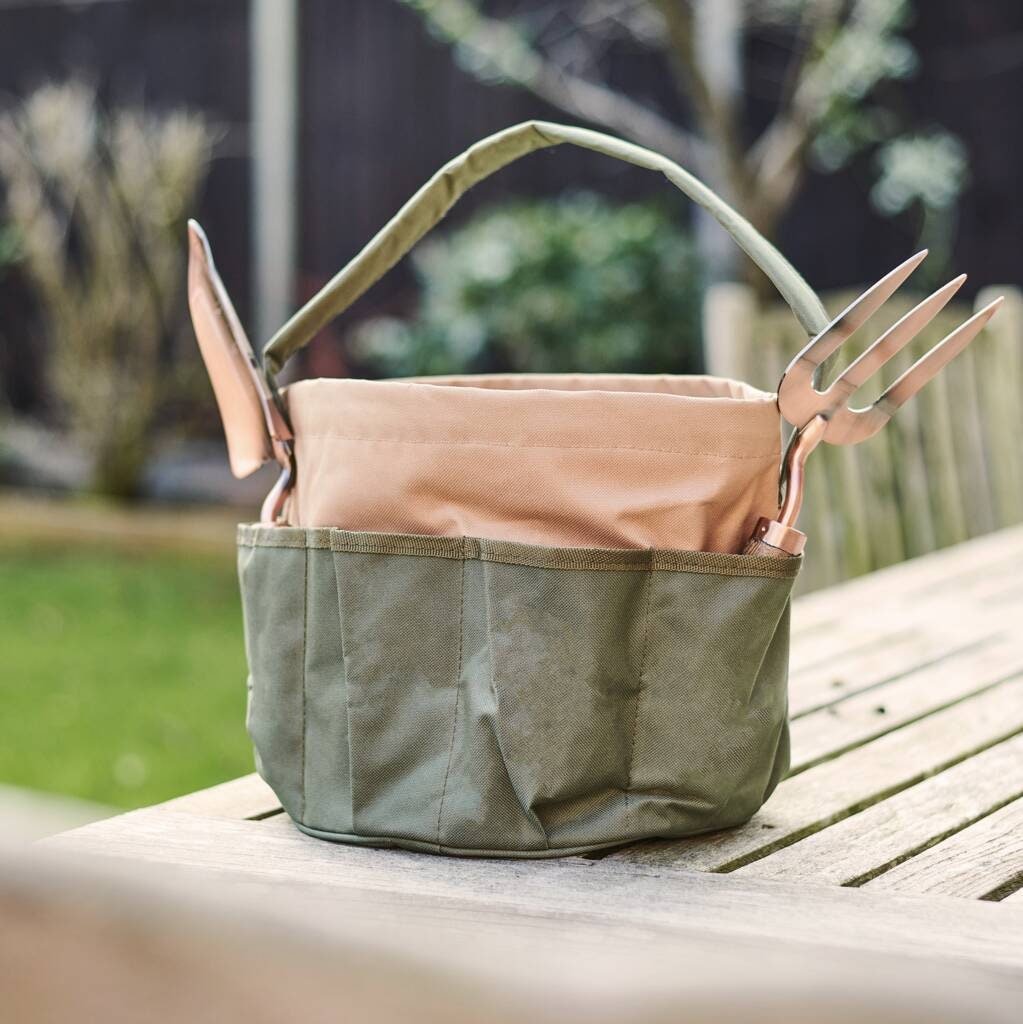 This denim garden tool bag has many spacious compartments to store garden tools. Easy to carry around the garden thanks to the sturdy handle