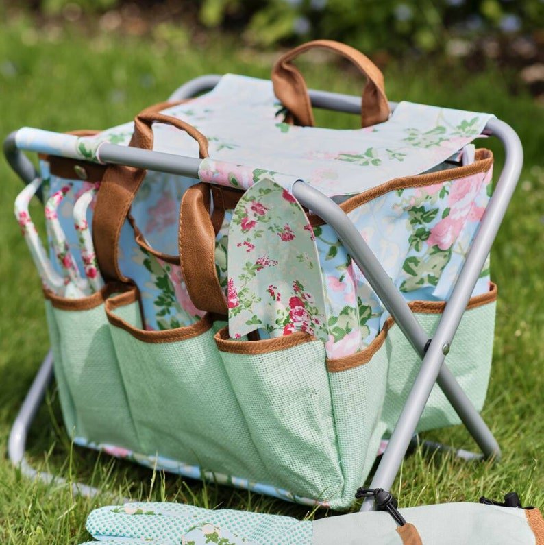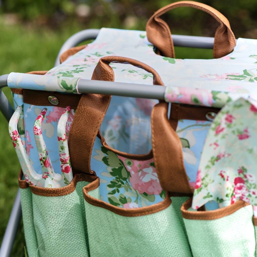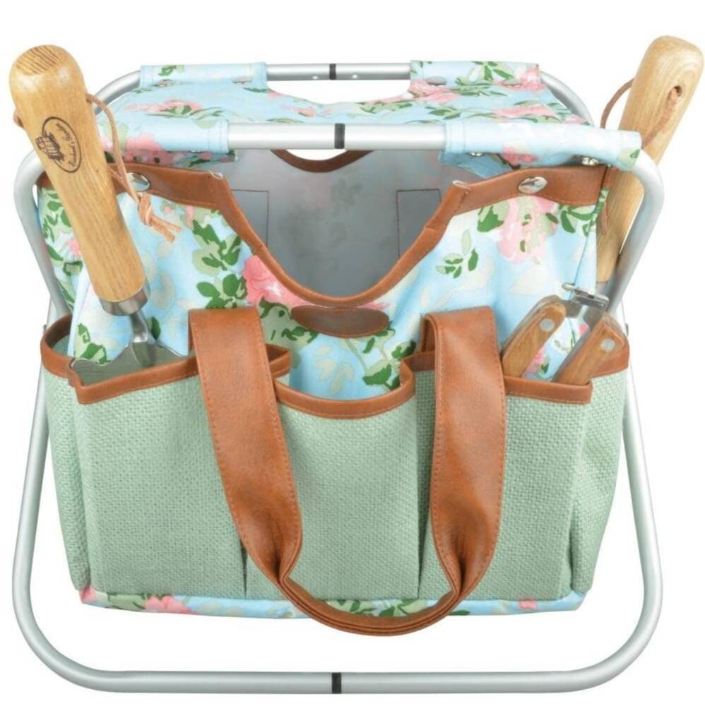 Personalized Floral Garden Tool Stool: Folding Garden Storage